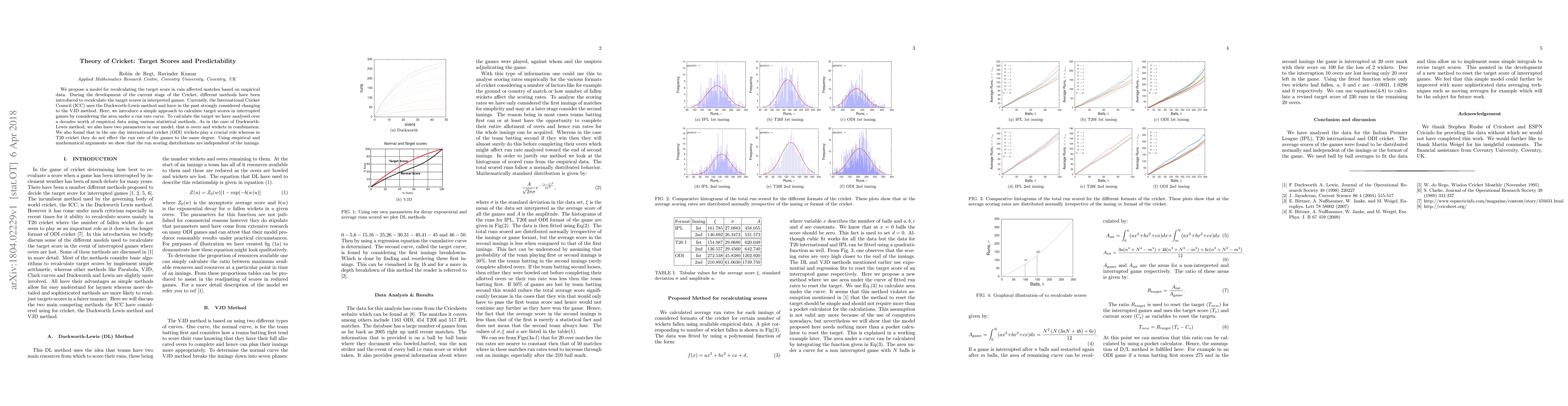 We propose a model for recalculating the target score in rain affected matches based on empirical data. During the development of the current stage of the Cricket, different methods have been introduced to recalculate the target scores in interpreted games. Currently, the International Cricket Council (ICC) uses the Duckworth-Lewis method and have in the past strongly considered changing to the VJD method. Here, we introduce a simple approach to calculate target scores in interrupted games by considering the area under a run rate curve. To calculate the target we have analysed over a decades worth of empirical data using various statistical methods. As in the case of Duckworth- Lewis method, we also have two parameters in our model, that is overs and wickets in combination. We also found that in the one day international cricket (ODI) wickets play a crucial role whereas in T20 cricket they do not effect the run rate of the games to the same degree. Using empirical and mathematical arguments we show that the run scoring distributions are independent of the innings.