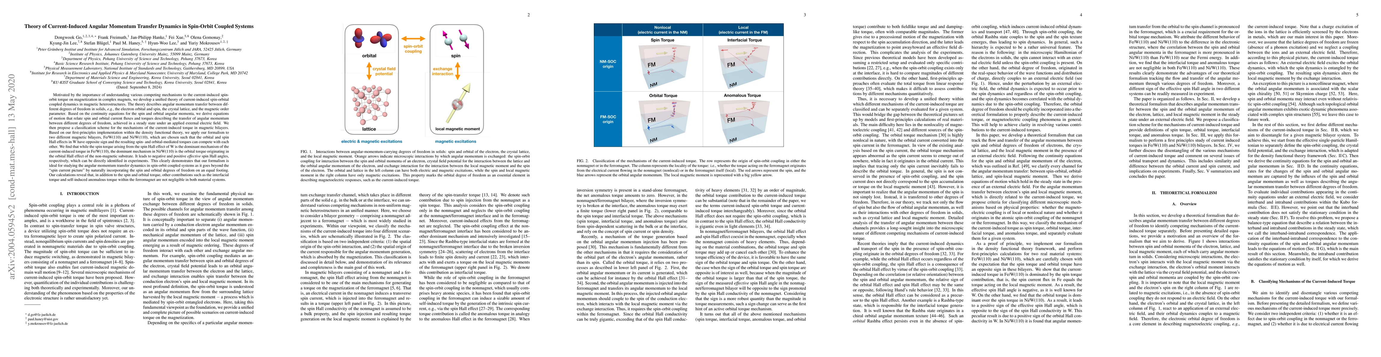 Motivated by the importance of understanding competing mechanisms to current-induced spin-orbit torque in complex magnets, we develop a unified theory of current-induced spin-orbital coupled dynamics. The theory describes angular momentum transfer between different degrees of freedom in solids, e.g., the electron orbital and spin, the crystal lattice, and the magnetic order parameter. Based on the continuity equations for the spin and orbital angular momenta, we derive equations of motion that relate spin and orbital current fluxes and torques describing the transfer of angular momentum between different degrees of freedom. We then propose a classification scheme for the mechanisms of the current-induced torque in magnetic bilayers. Based on our first-principles implementation, we apply our formalism to two different magnetic bilayers, Fe/W(110) and Ni/W(110), which are chosen such that the orbital and spin Hall effects in W have opposite sign and the resulting spin- and orbital-mediated torques can compete with each other. We find that while the spin torque arising from the spin Hall effect of W is the dominant mechanism of the current-induced torque in Fe/W(110), the dominant mechanism in Ni/W(110) is the orbital torque originating in the orbital Hall effect of W. It leads to negative and positive effective spin Hall angles, respectively, which can be directly identified in experiments. This clearly demonstrates that our formalism is ideal for studying the angular momentum transfer dynamics in spin-orbit coupled systems as it goes beyond the "spin current picture" by naturally incorporating the spin and orbital degrees of freedom on an equal footing. Our calculations reveal that, in addition to the spin and orbital torque, other contributions such as the interfacial torque and self-induced anomalous torque within the ferromagnet are not negligible in both material systems.