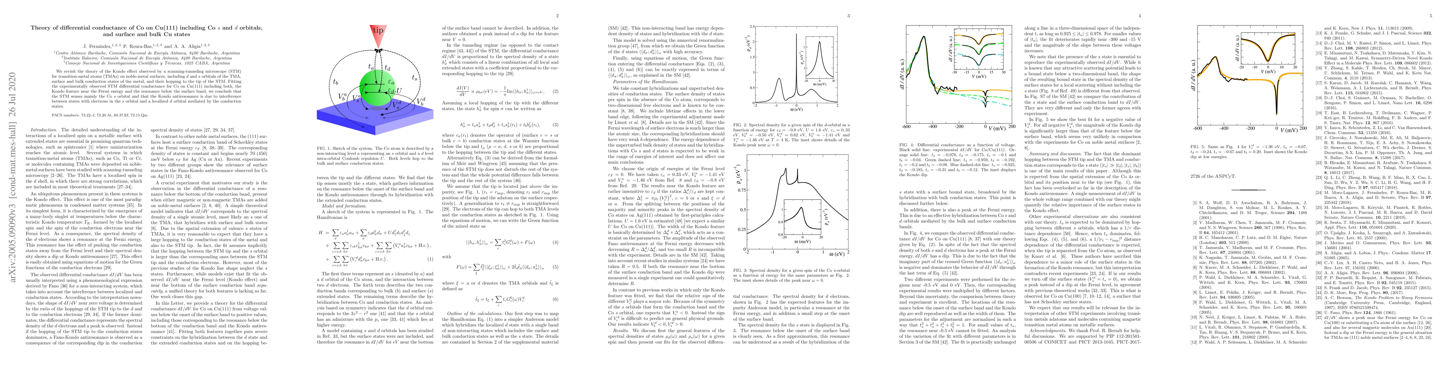 We revisit the theory of the Kondo effect observed by a scanning-tunneling microscope (STM) for transition-metal atoms (TMAs) on noble-metal surfaces, including $d$ and $s$ orbitals of the TMA, surface and bulk conduction states of the metal, and their hoppingto the tip of the STM. Fitting the experimentally observed STM differential conductance for Co on Cu(111) including both, the Kondo feature near the Fermi energy and the resonance below the surface band, we conclude that the STM senses mainly the Co $s$ orbital and that the Kondo antiresonance is due to interference between states with electrons in the $s$ orbital and a localized $d$ orbital mediated by the conduction states.