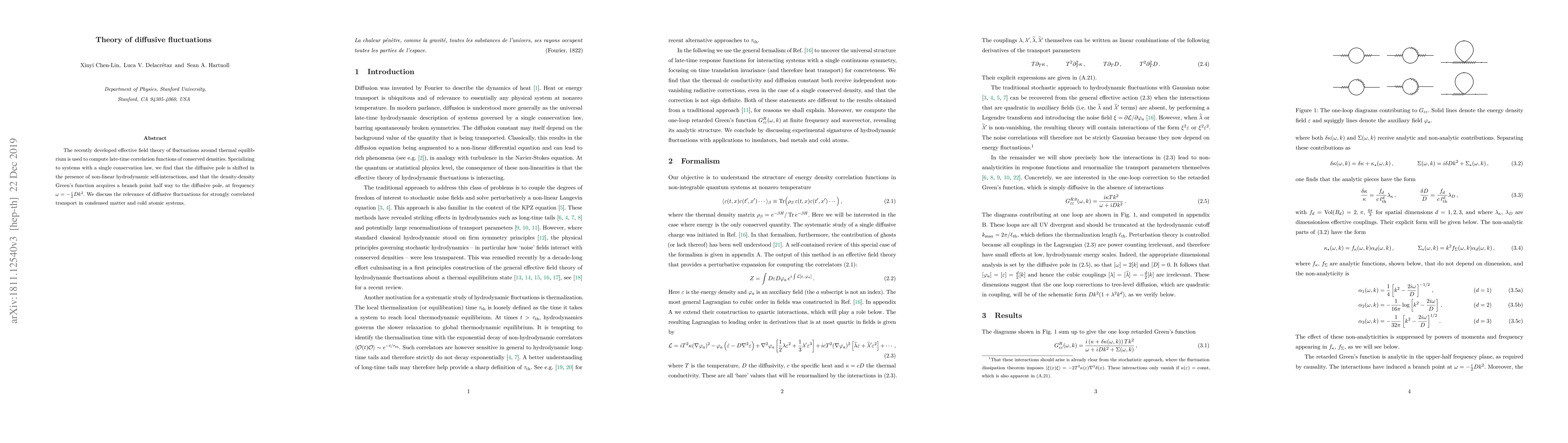 The recently developed effective field theory of fluctuations around thermal equilibrium is used to compute late-time correlation functions of conserved densities. Specializing to systems with a single conservation law, we find that the diffusive pole is shifted in the presence of non-linear hydrodynamic self-interactions, and that the density-density Green's function acquires a branch point half way to the diffusive pole, at frequency $\omega= -\frac{i}{2}Dk^2$. We discuss the relevance of diffusive fluctuations for strongly correlated transport in condensed matter and cold atomic systems.