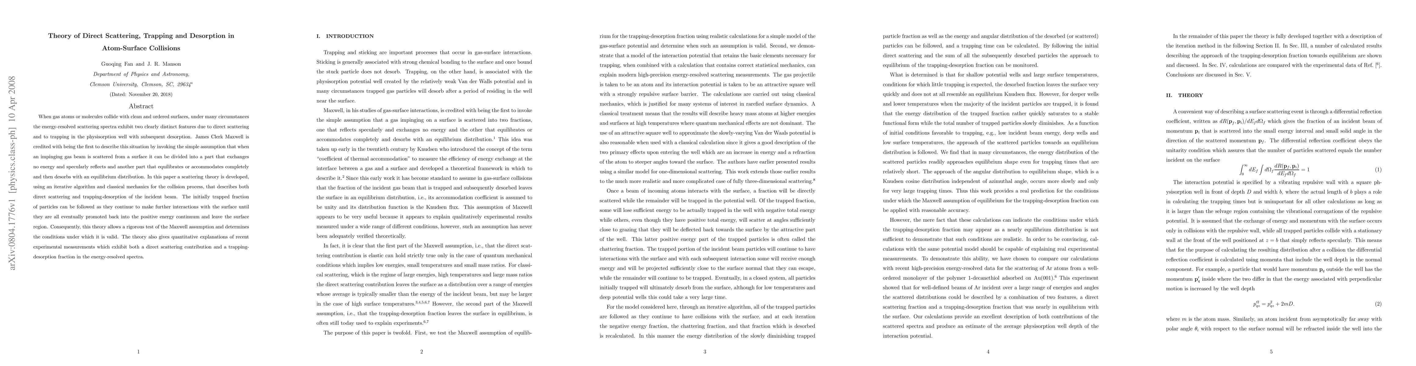 A new scattering theory explains how gas atoms interact with surfaces, describing both direct scattering and trapping-desorption, and rigorously tests the Maxwell assumption.