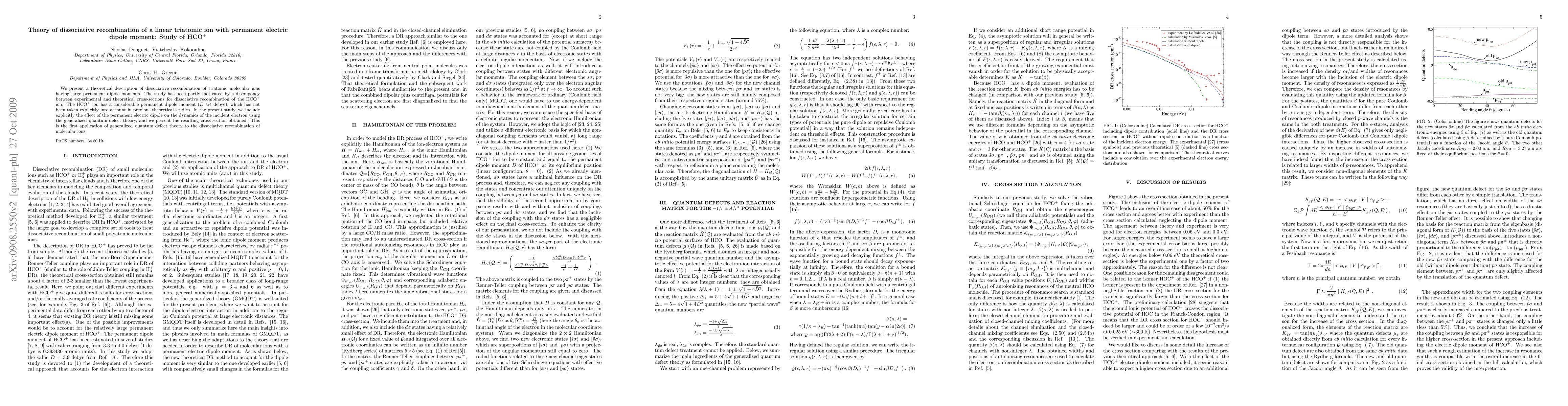 This paper presents a theoretical analysis of dissociative recombination in HCO$^+$ ions, incorporating the significant permanent dipole moment for the first time. Using generalized quantum defect theory, the study resolves discrepancies between experimental and previous theoretical cross-section data for this process.
