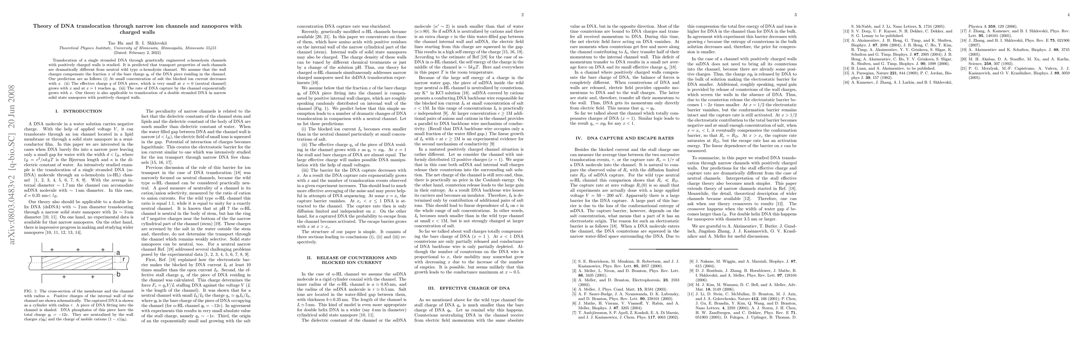 This paper studies DNA translocation through $\alpha$-hemolysin channels with positively charged walls, predicting that transport properties differ significantly from neutral channels. The theory predicts that the effective charge of DNA increases with the fraction of wall charges compensating the DNA's charge, leading to an exponential growth in DNA capture rate and altered ion current behavior at low salt concentrations.