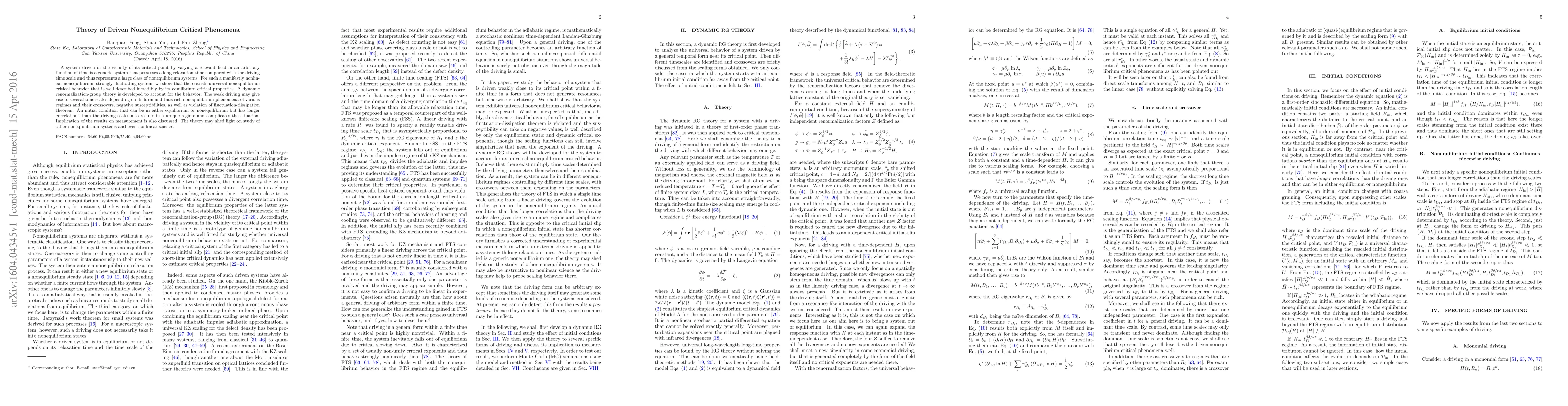 A system driven in the vicinity of its critical point by varying a relevant field in an arbitrary function of time is a generic system that possesses a long relaxation time compared with the driving time scale and thus represents a large class of nonequilibrium systems. For such a manifestly nonlinear nonequilibrium strongly fluctuating system, we show that there exists universal nonequilibrium critical behavior that is well described incredibly by its equilibrium critical properties. A dynamic renormalization-group theory is developed to account for the behavior. The weak driving may give rise to several time scales depending on its form and thus rich nonequilibrium phenomena of various regimes and their crossovers, negative susceptibilities, as well as violation of fluctuation-dissipation theorem. An initial condition that can be in either equilibrium or nonequilibrium but has longer correlations than the driving scales also results in a unique regime and complicates the situation. Implication of the results on measurement is also discussed. The theory may shed light on study of other nonequilibrium systems and even nonlinear science.