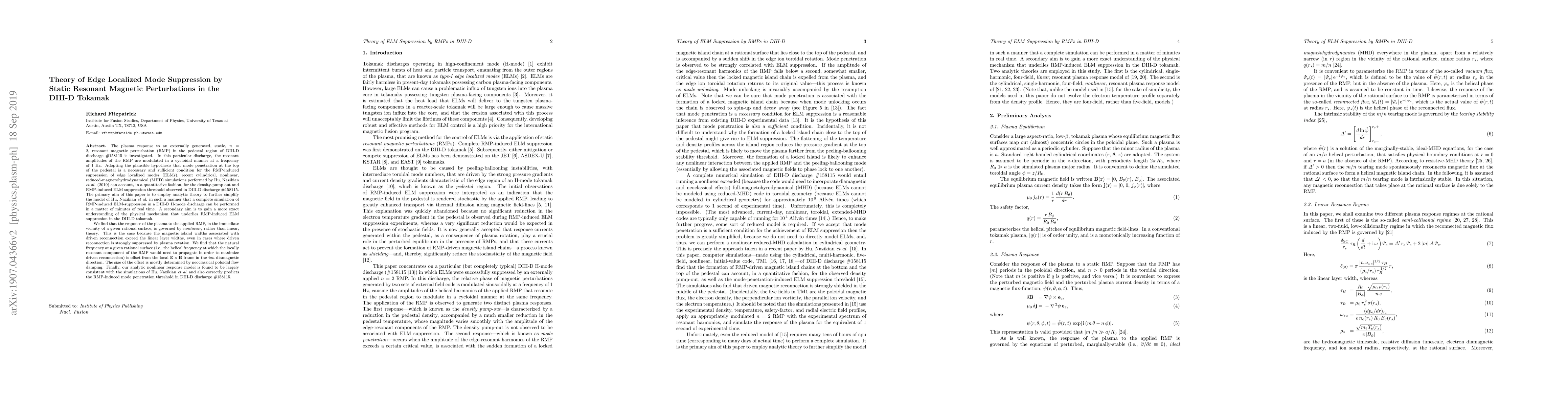 This paper investigates the suppression of edge localized modes (ELMs) in DIII-D Tokamak using static resonant magnetic perturbations (RMPs) and aims to simplify the model to enable rapid simulations. It seeks to understand the physical mechanism behind RMP-induced ELM suppression and validates findings using recent nonlinear MHD simulations.