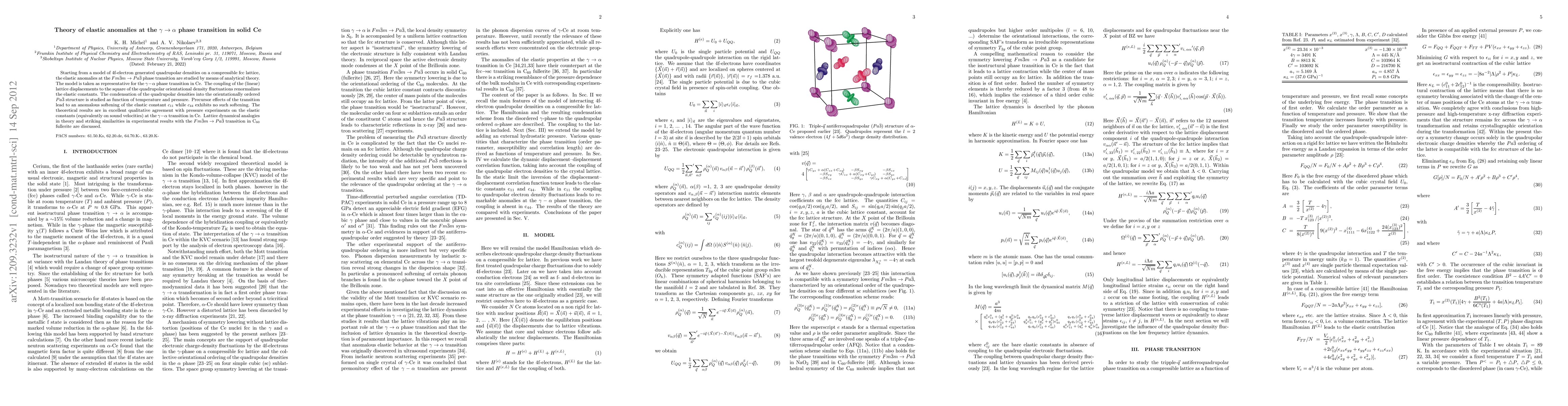 This paper develops an analytical theory to study elastic anomalies during the gamma-alpha phase transition in solid Ce, focusing on the renormalization of elastic constants due to quadrupolar density fluctuations. The model predicts an anomalous softening of the elastic constant c11, with no softening in c44, aligning well with experimental pressure data on Ce's phase transition.