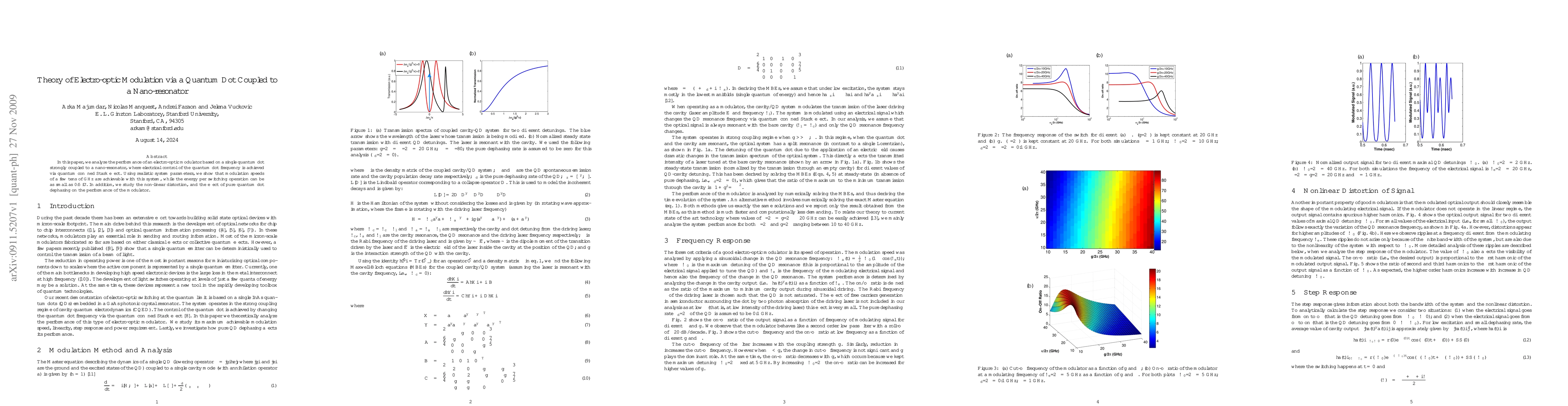 This paper investigates an electro-optic modulator utilizing a single quantum dot coupled to a nano-resonator, demonstrating modulation speeds up to tens of GHz and energy per switching as low as 0.5 fJ, while also examining non-linear distortion and quantum dephasing effects.