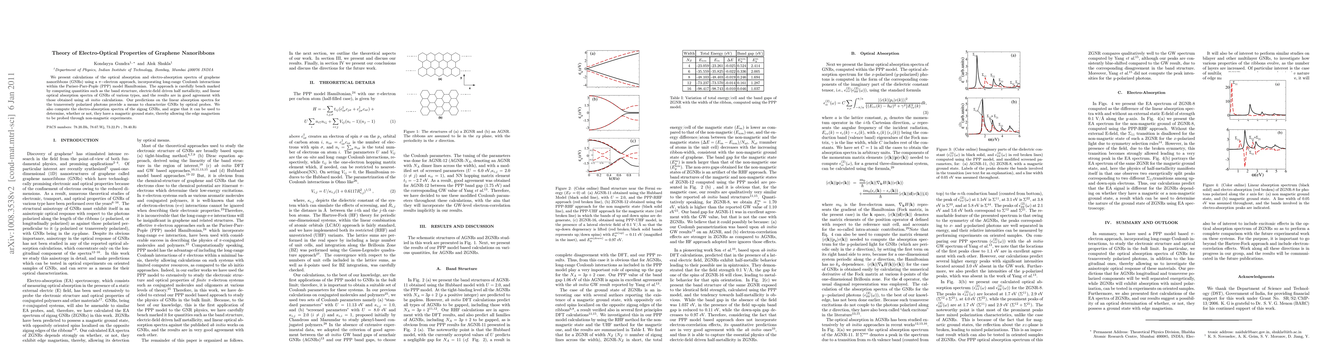 This paper calculates the optical and electro-absorption spectra of graphene nanoribbons using a $\pi-$electron approach, showing good agreement with \emph{ab initio} calculations. It proposes that the linear absorption spectra can characterize GNRs optically, and the electro-absorption spectra of zigzag GNRs can reveal their magnetic ground state.