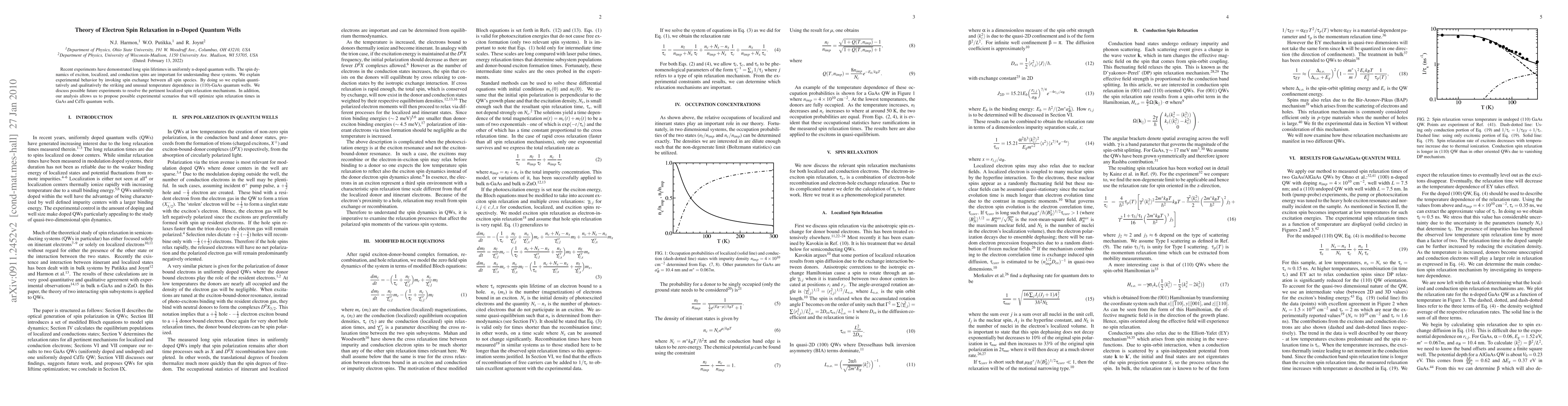 This paper explains the long spin lifetimes observed in n-doped quantum wells by describing spin exchange dynamics among exciton, localized, and conduction spins, and proposes future experiments to further explore localized spin relaxation mechanisms. It also suggests methods to optimize spin relaxation times in GaAs and CdTe quantum wells.