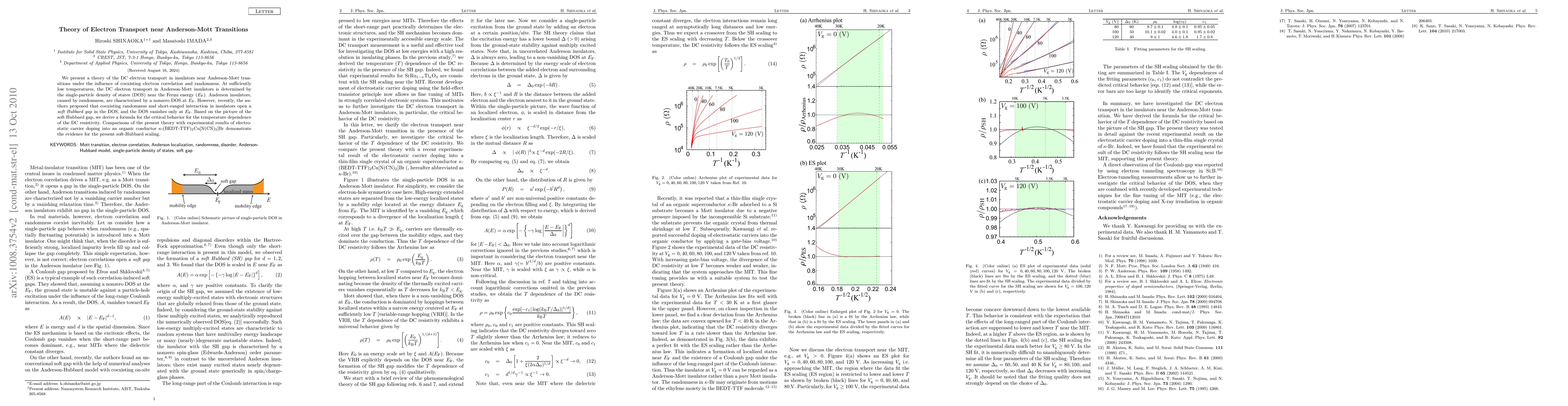 This paper develops a theory for DC electron transport in insulators near Anderson-Mott transitions, showing that a soft Hubbard gap emerges due to electron correlation and randomness, leading to a specific temperature-dependent resistivity formula. Experimental validation through electrostatic doping in an organic conductor supports the proposed soft-Hubbard scaling.