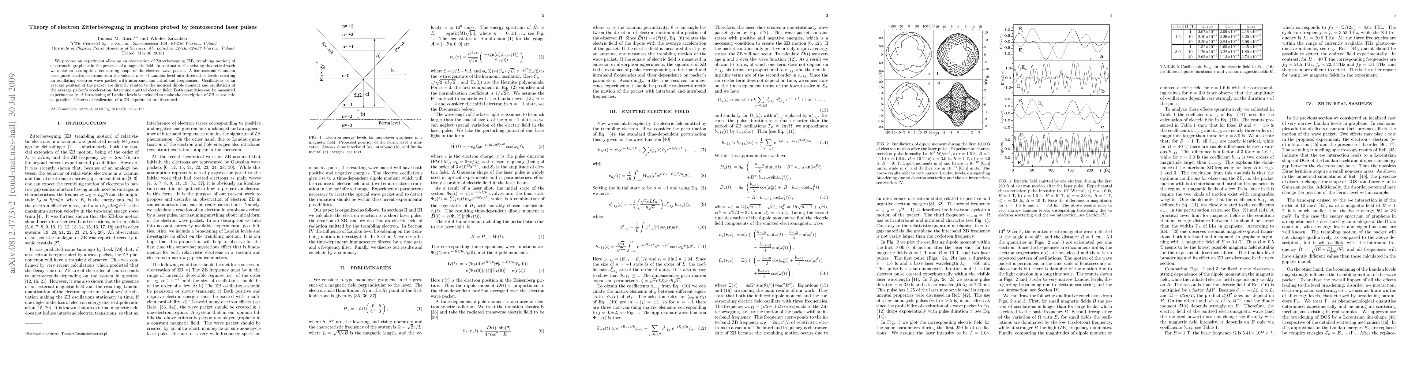 This paper proposes an experiment to observe electron Zitterbewegung in graphene using femtosecond laser pulses, without assuming a specific electron wave packet shape. The laser pulse excites electrons between Landau levels, creating oscillating wave packets whose motion can be measured via induced dipole moments and emitted electric fields.