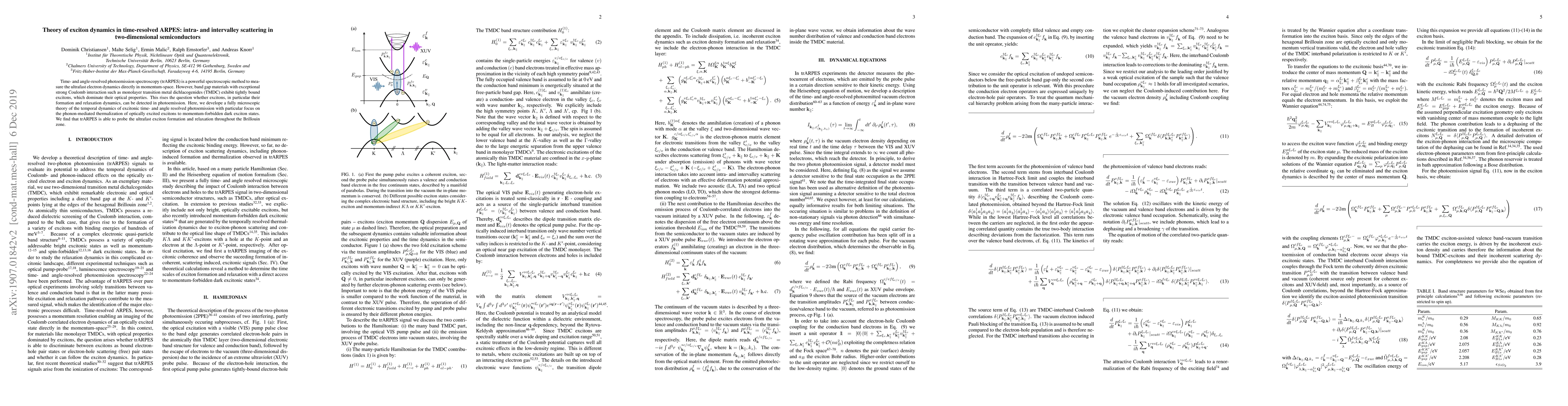 Time- and angle-resolved photoemission spectroscopy (trARPES) is a powerful spectroscopic method to measure the ultrafast electron dynamics directly in momentum-space. However, band gap materials with exceptional strong Coulomb interaction such as monolayer transition metal dichlacogenides (TMDC) exhibit tightly bound excitons, which dominate their optical properties. This rises the question whether excitons, in particular their formation and relaxation dynamics, can be detected in photoemission. Here, we develope a fully microscopic theory of the temporal dynamics of excitonic time- and angle resolved photoemission with particular focus on the phonon-mediated thermalization of optically excited excitons to momentum-forbidden dark exciton states. We find that trARPES is able to probe the ultrafast exciton formation and relaxation throughout the Brillouin zone.