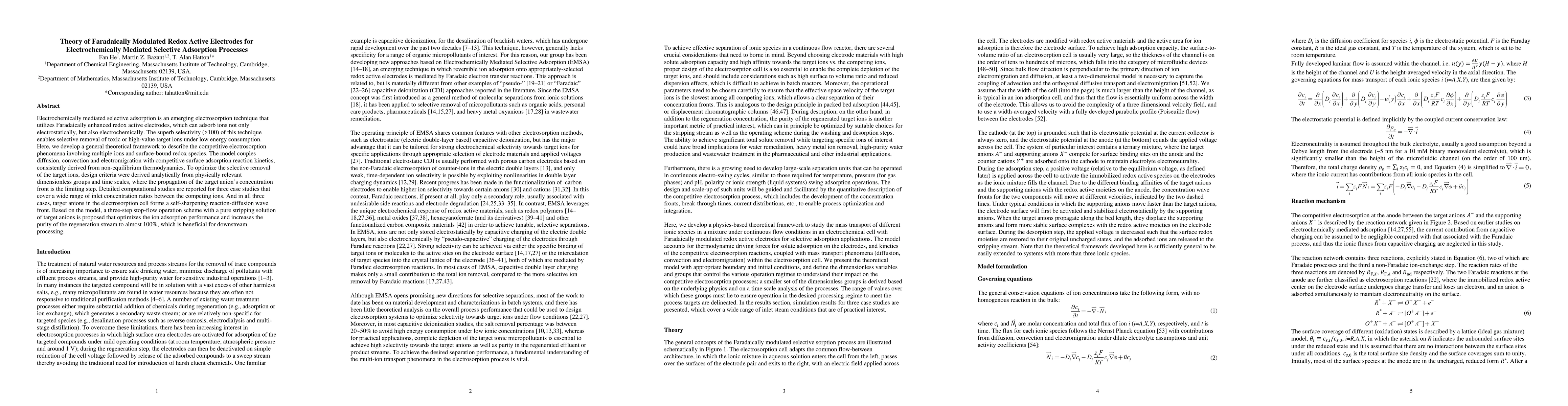 Researchers develop a theoretical framework for electrochemically mediated selective adsorption processes using Faradaically modulated redox active electrodes, enabling high selectivity and low energy consumption. A proposed operation scheme optimizes ion adsorption performance and increases the purity of the regeneration stream.
