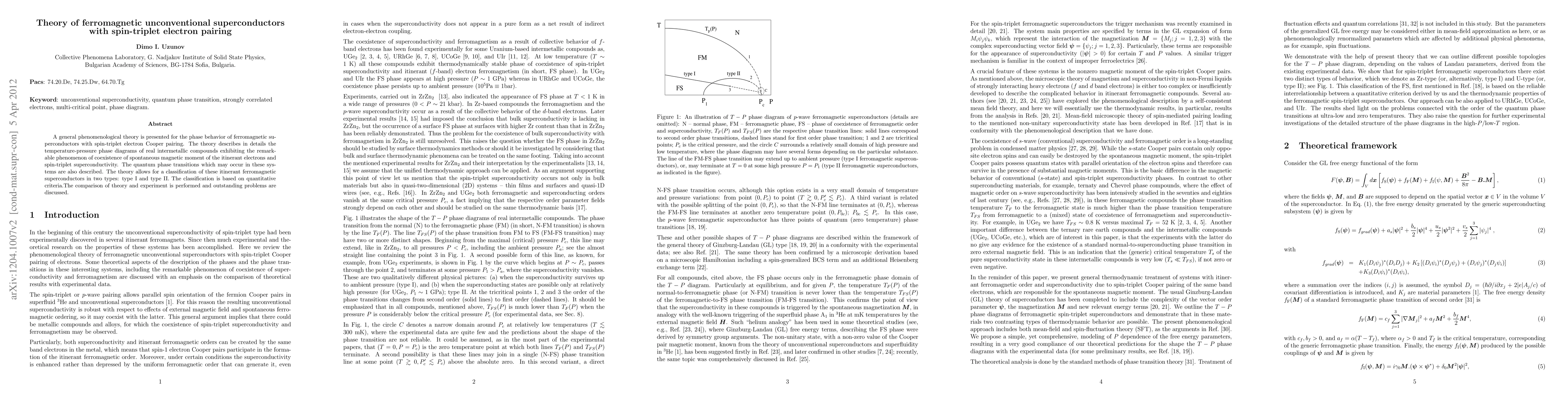 This paper presents a phenomenological theory for ferromagnetic unconventional superconductors with spin-triplet pairing, detailing phase diagrams and quantum phase transitions in itinerant electron systems. It classifies these superconductors into type I and type II based on quantitative criteria and discusses outstanding experimental challenges.