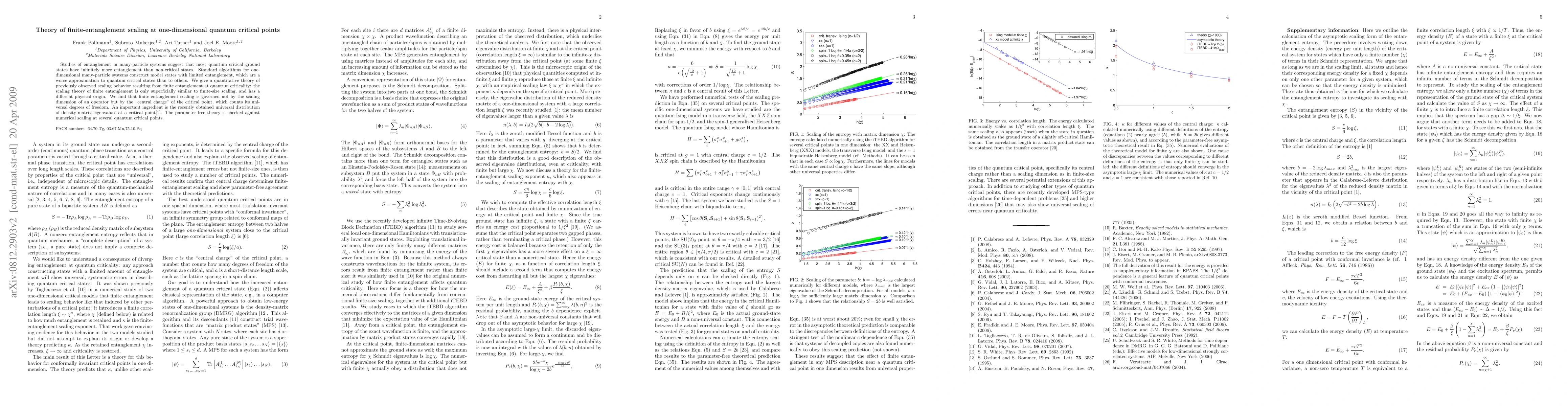 This paper develops a quantitative theory explaining the finite entanglement scaling observed at one-dimensional quantum critical points, showing it is governed by the central charge rather than the scaling dimension. The theory is validated by numerical scaling studies at various quantum critical points.