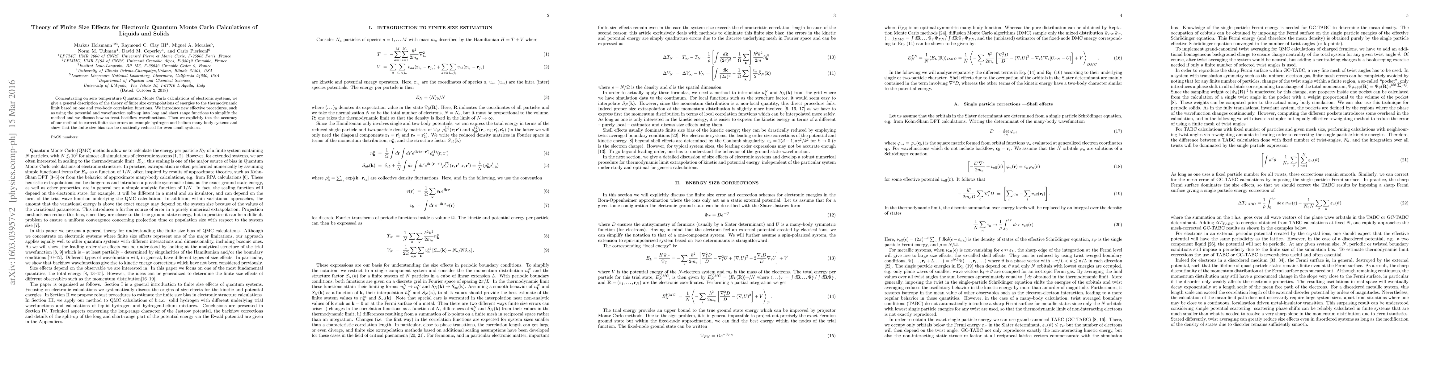 This paper presents a theory for finite size effects in zero temperature Quantum Monte Carlo calculations of electronic systems, introducing new methods to simplify extrapolations to the thermodynamic limit. The proposed techniques, including the split-up of potential and wavefunction, are tested on hydrogen and helium systems, showing significant reduction in finite size bias.