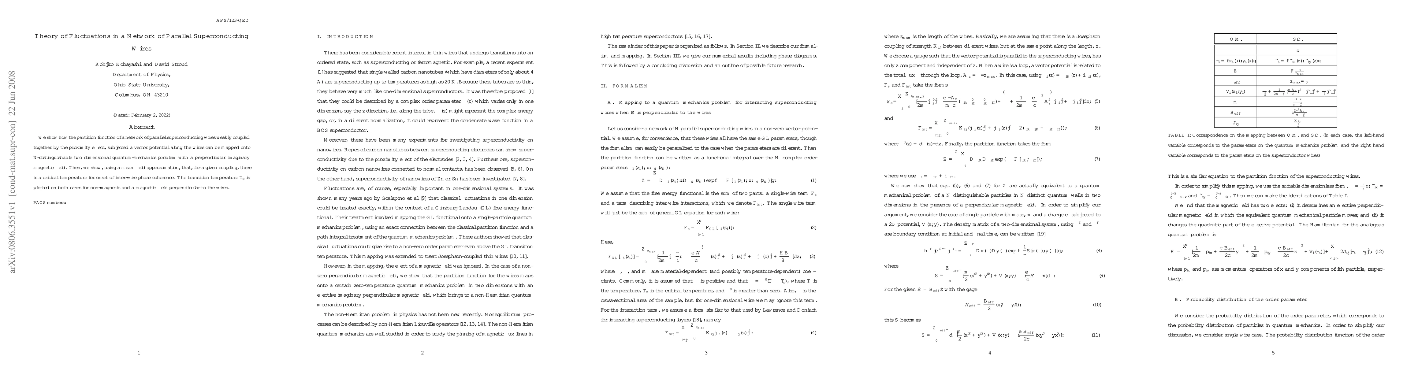 We show how the partition function of a network of parallel superconducting wires weakly coupled together by the proximity effect, subjected a vector potential along the wires can be mapped onto N-distinguishable two dimensional quantum-mechanics problem with a perpendicular imaginary magnetic field. Then, we show, using a mean field approximation, that, for a given coupling, there is a critical temperature for onset of inter-wire phase coherence. The transition temperature $T_c$ is plotted on both cases for non-magnetic and a magnetic field perpendicular to the wires.