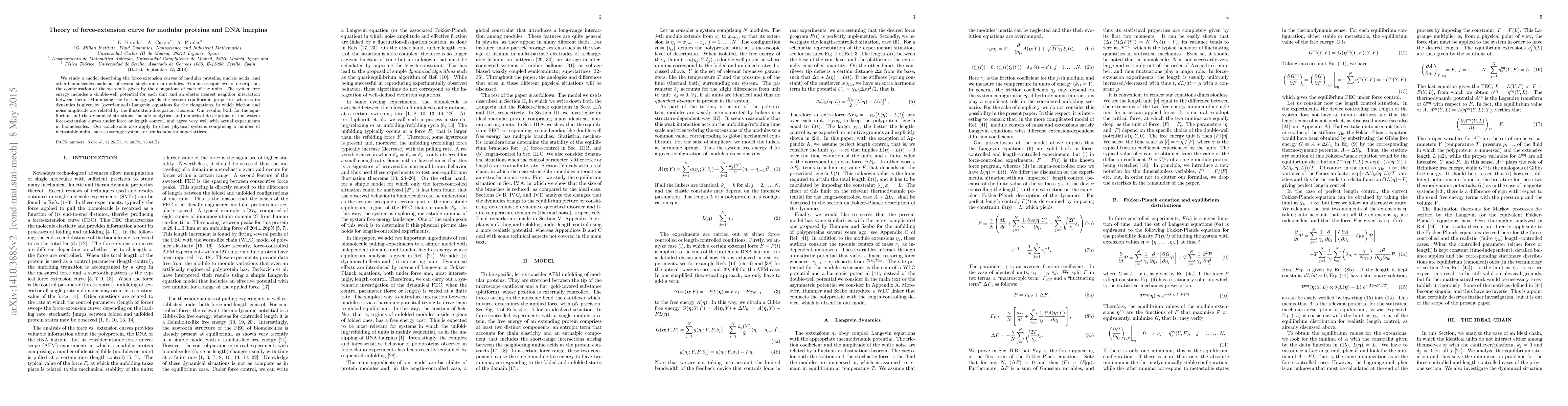 We study a model describing the force-extension curves of modular proteins, nucleic acids, and other biomolecules made out of several single units or modules. At a mesoscopic level of description, the configuration of the system is given by the elongations of each of the units. The system free energy includes a double-well potential for each unit and an elastic nearest neighbor interaction between them. Minimizing the free energy yields the system equilibrium properties whereas its dynamics is given by (overdamped) Langevin equations for the elongations, in which friction and noise amplitude are related by the fluctuation-dissipation theorem. Our results, both for the equilibrium and the dynamical situations, include analytical and numerical descriptions of the system force-extension curves under force or length control, and agree very well with actual experiments in biomolecules. Our conclusions also apply to other physical systems comprising a number of metastable units, such as storage systems or semiconductor superlattices.
