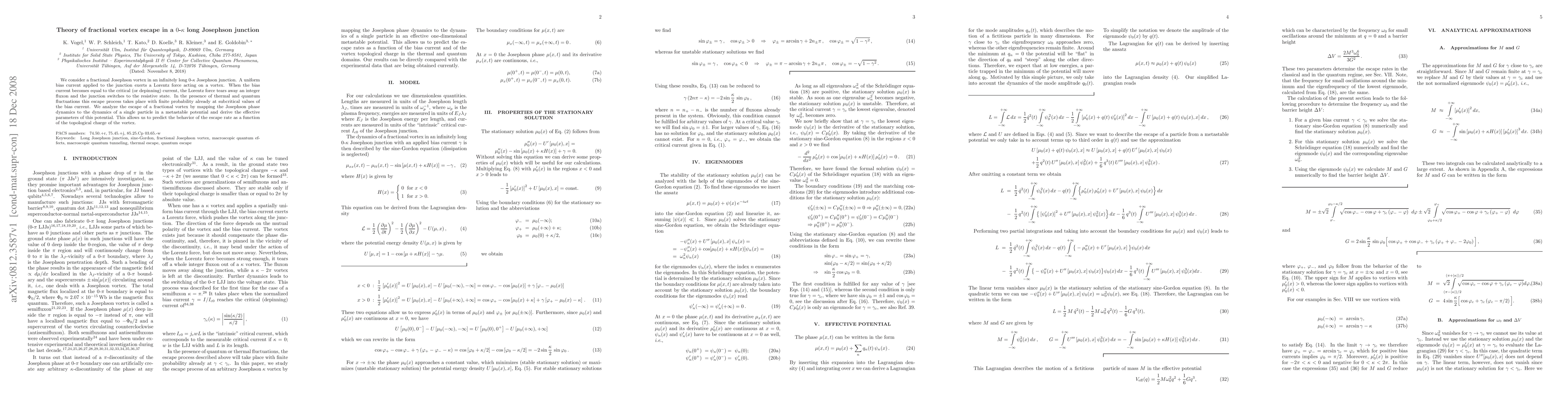 This paper investigates the escape of a fractional vortex in a 0-kappa Josephson junction under a bias current, showing that thermal and quantum fluctuations can cause the escape even below the critical current. The dynamics are modeled as a particle in a metastable potential, allowing predictions of the escape rate based on the vortex's topological charge.