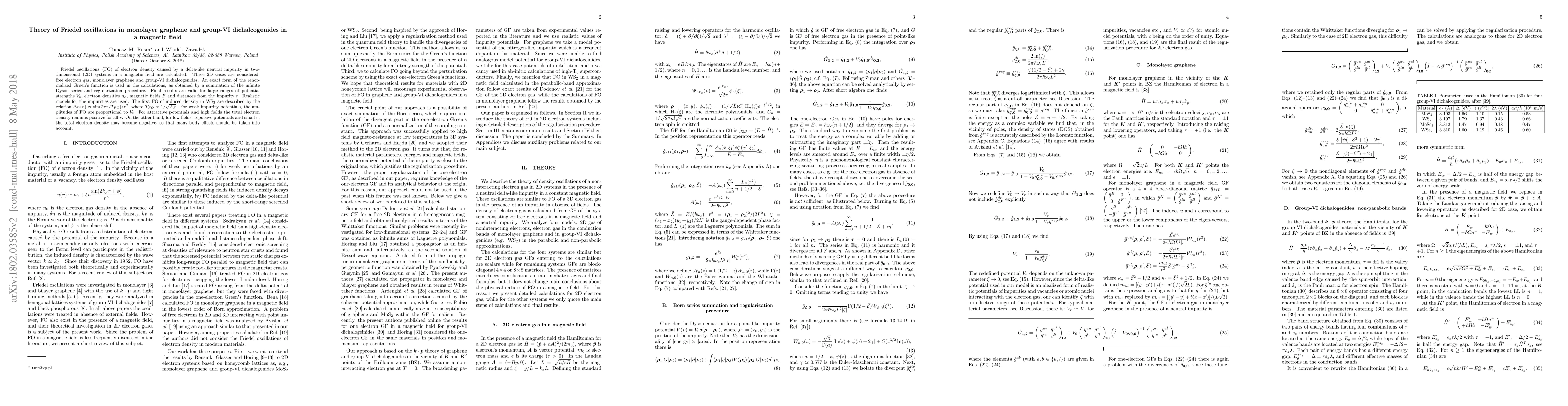 This paper calculates Friedel oscillations in electron density near a delta-like impurity in 2D systems, including monolayer graphene and group-VI dichalcogenides, under a magnetic field. The study uses an exact renormalized Green's function and finds that the oscillations in WS$_2$ follow a sinusoidal decay proportional to $1/r^2$, with implications for many-body effects at low fields and repulsive potentials.
