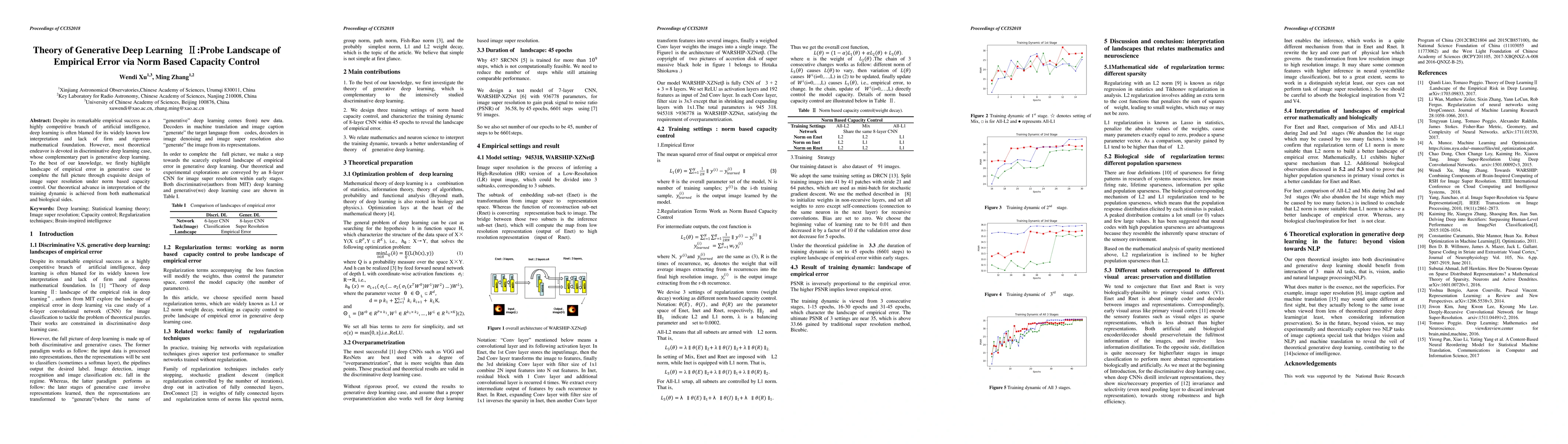 This paper investigates the empirical error landscape in generative deep learning, focusing on image super-resolution under norm-based capacity control. It aims to provide a theoretical foundation for generative deep learning, complementing existing work on discriminative deep learning, through mathematical and biological interpretations of training dynamics.