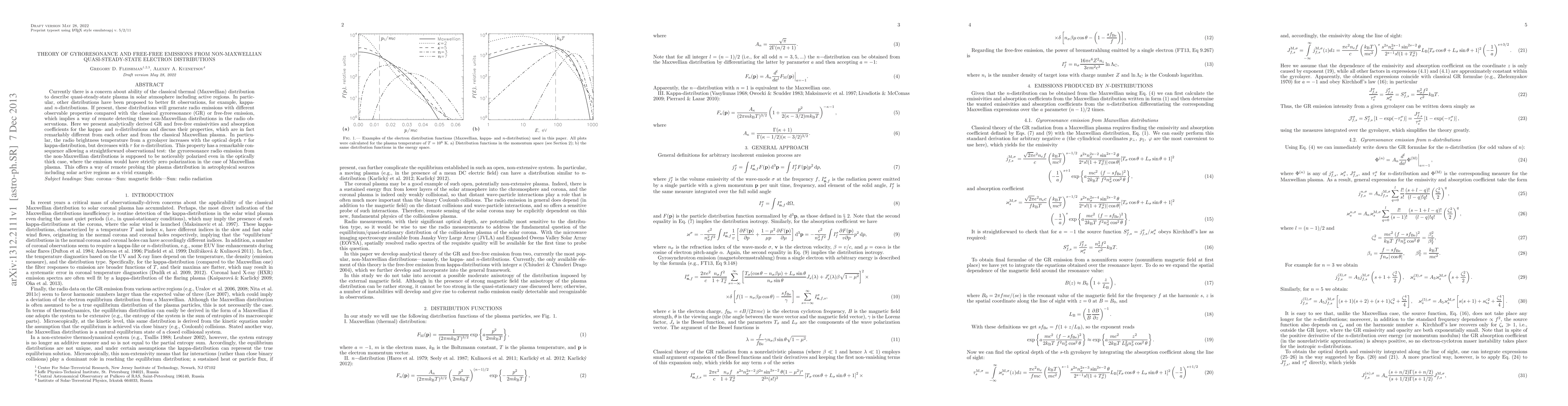 This paper develops theoretical models for gyroresonance and free-free emissions from non-Maxwellian quasi-steady-state electron distributions, specifically kappa- and $n$-distributions, to better understand solar atmosphere plasma. It finds that these distributions produce distinct radio emissions, offering a method for remote detection through polarization properties.