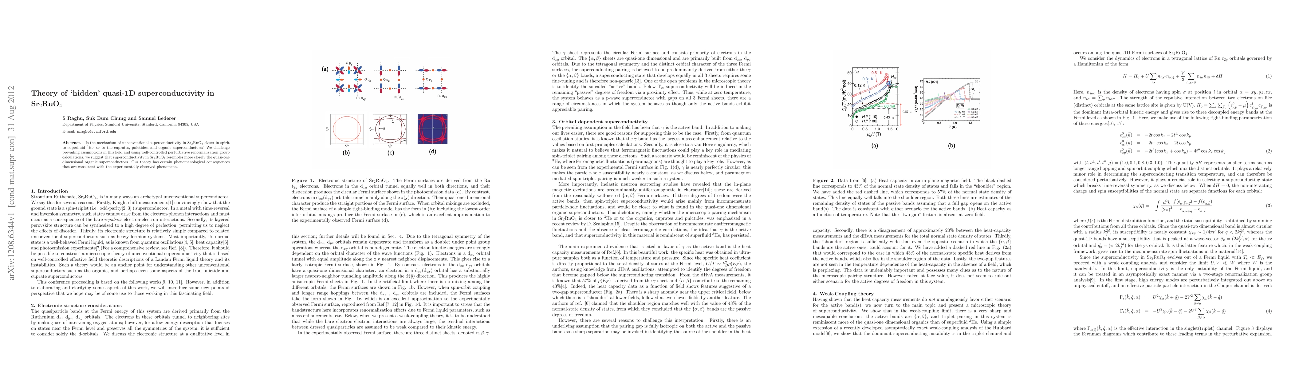 This research proposes that Sr$_2$RuO$_4$ exhibits a `hidden' quasi-1D superconducting mechanism akin to organic superconductors, challenging conventional views that align it with cuprates and other high-temperature superconductors. The theory is supported by controlled perturbative renormalization group calculations and is consistent with observed experimental phenomena.