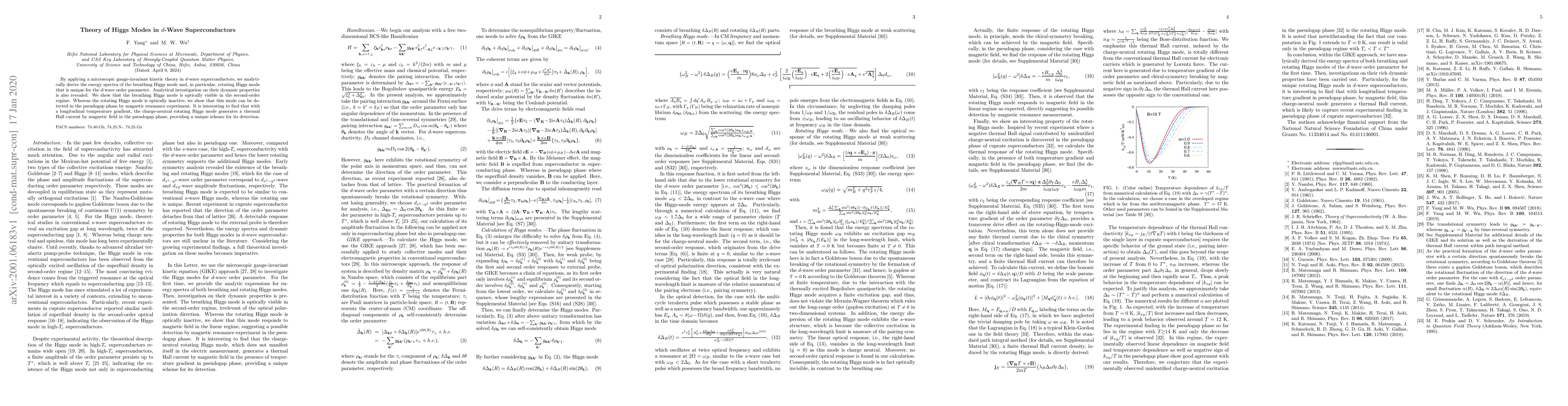By applying a microscopic gauge-invariant kinetic theory in $d$-wave superconductors, we analytically derive the energy spectra of the breathing Higgs mode and, in particular, rotating Higgs mode that is unique for the $d$-wave order parameter. Analytical investigation on their dynamic properties is also revealed. We show that the breathing Higgs mode is optically visible in the second-order regime. Whereas the rotating Higgs mode is optically inactive, we show that this mode can be detected in the pseudogap phase by magnetic resonance experiment. It is interesting to find that with a longitudinal temperature gradient, the charge-neutral rotating Higgs mode generates a thermal Hall current by magnetic field in the pseudogap phase, providing a unique scheme for its detection.