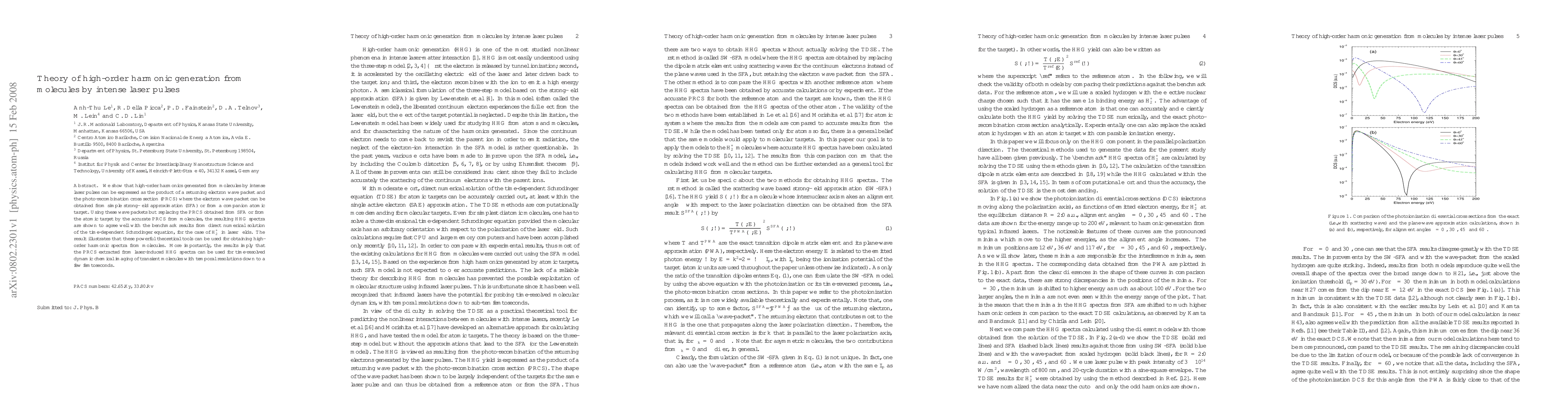This paper proposes a theoretical framework for high-order harmonic generation (HHG) from molecules under intense laser pulses, showing that HHG spectra can be modeled using electron wave packets and photo-recombination cross sections (PRCS). The PRCS from molecules provides accurate HHG spectra predictions, enabling time-resolved dynamic chemical imaging of transient molecules.