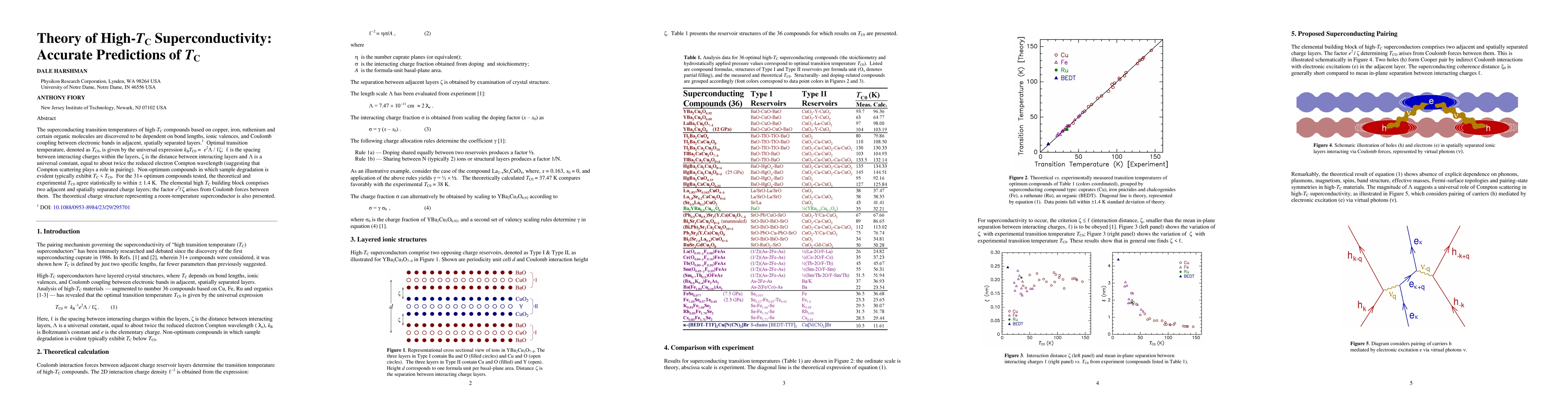 The superconducting transition temperatures of high-Tc compounds based on copper, iron, ruthenium and certain organic molecules are discovered to be dependent on bond lengths, ionic valences, and Coulomb coupling between electronic bands in adjacent, spatially separated layers [1]. Optimal transition temperature, denoted as T_c0, is given by the universal expression $k_BT_c0 = e^2 \Lambda / \ell\zeta$; $\ell$ is the spacing between interacting charges within the layers, \zeta is the distance between interacting layers and \Lambda is a universal constant, equal to about twice the reduced electron Compton wavelength (suggesting that Compton scattering plays a role in pairing). Non-optimum compounds in which sample degradation is evident typically exhibit Tc < T_c0. For the 31+ optimum compounds tested, the theoretical and experimental T_c0 agree statistically to within +/- 1.4 K. The elemental high Tc building block comprises two adjacent and spatially separated charge layers; the factor e^2/\zeta arises from Coulomb forces between them. The theoretical charge structure representing a room-temperature superconductor is also presented.