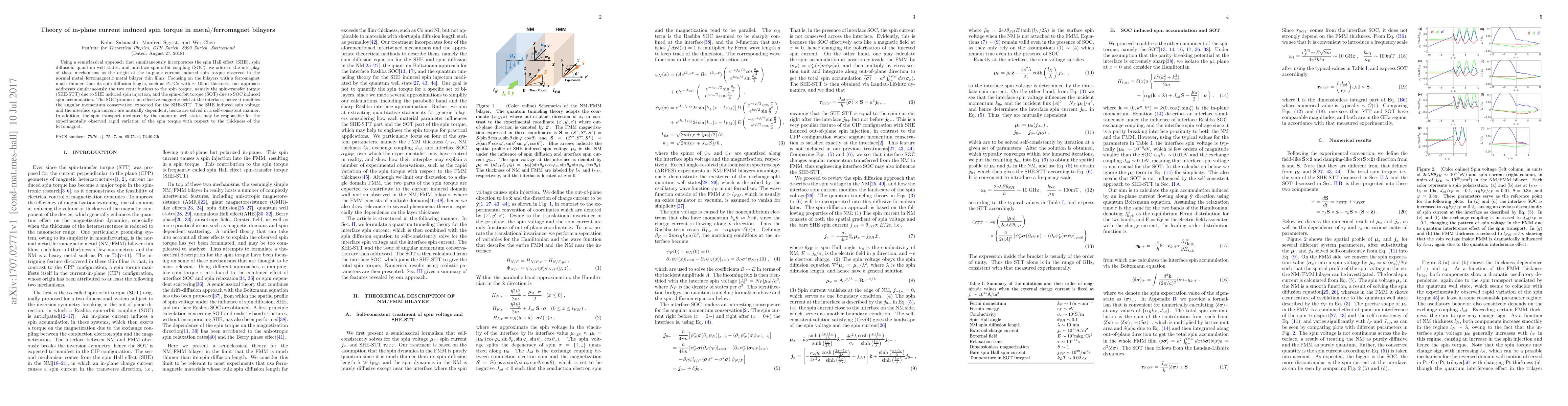 This research employs a semiclassical framework to analyze the in-plane current-induced spin torque in metal/ferromagnet bilayers, incorporating the spin Hall effect, spin diffusion, quantum well states, and interface spin-orbit coupling. The study highlights the contributions of spin-transfer torque and spin-orbit torque mechanisms and their interplay, particularly in bilayers where the ferromagnet is much thinner than its spin diffusion length.