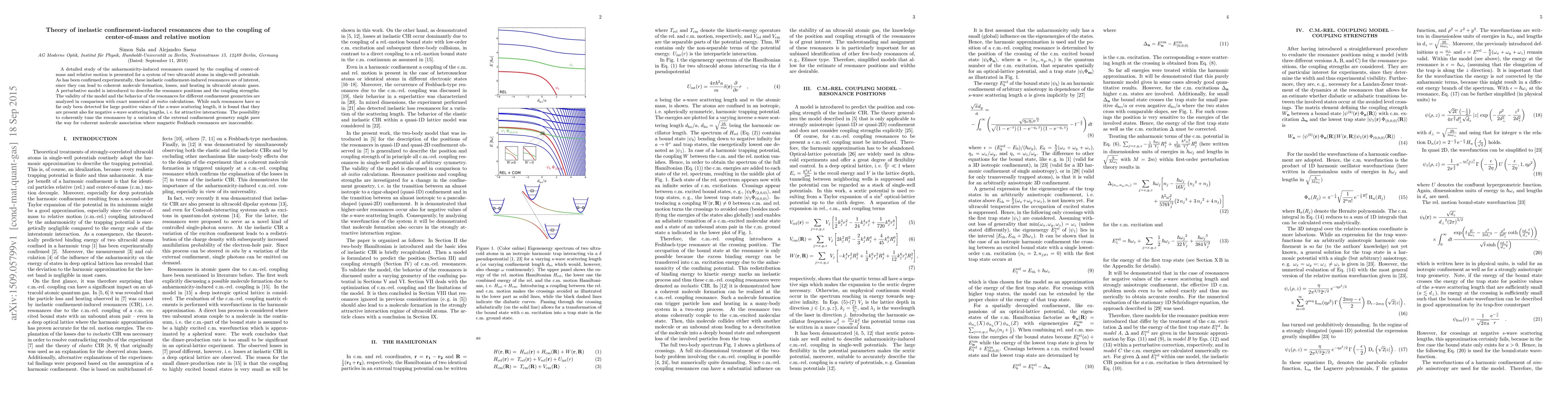 This paper explores inelastic confinement-induced resonances in ultracold atomic systems due to the coupling of center-of-mass and relative motion, introducing a perturbative model to describe these resonances. The study finds resonances also exist for attractive interactions, suggesting potential for coherent molecule formation via external confinement geometry.