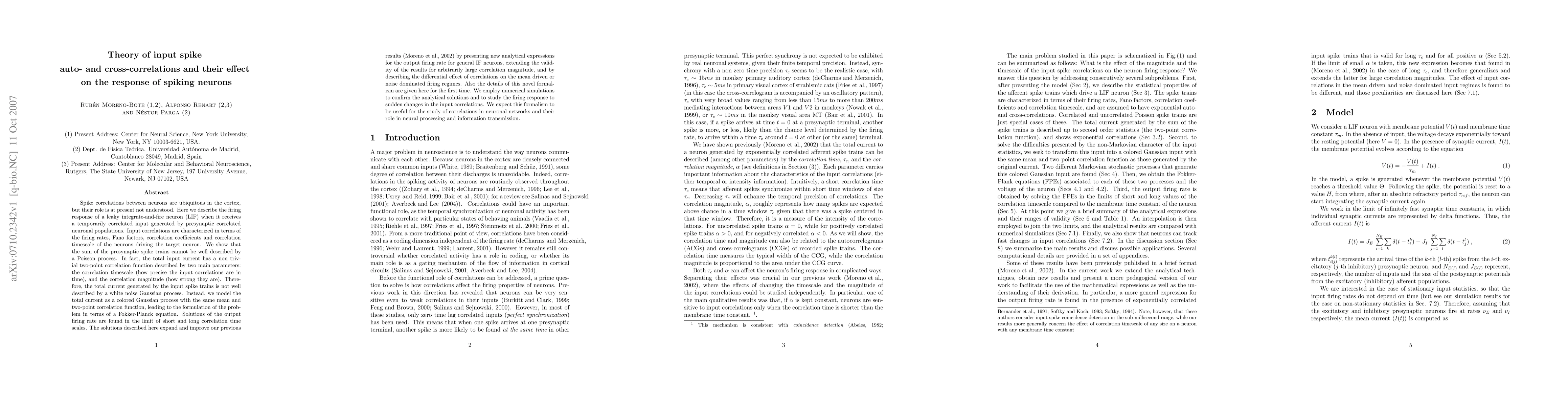 This paper investigates how input spike auto- and cross-correlations affect the firing response of a leaky integrate-and-fire neuron, revealing that presynaptic spike correlations cannot be modeled by Poisson processes. It provides analytical solutions for the neuron's output firing rate under different correlation timescales.