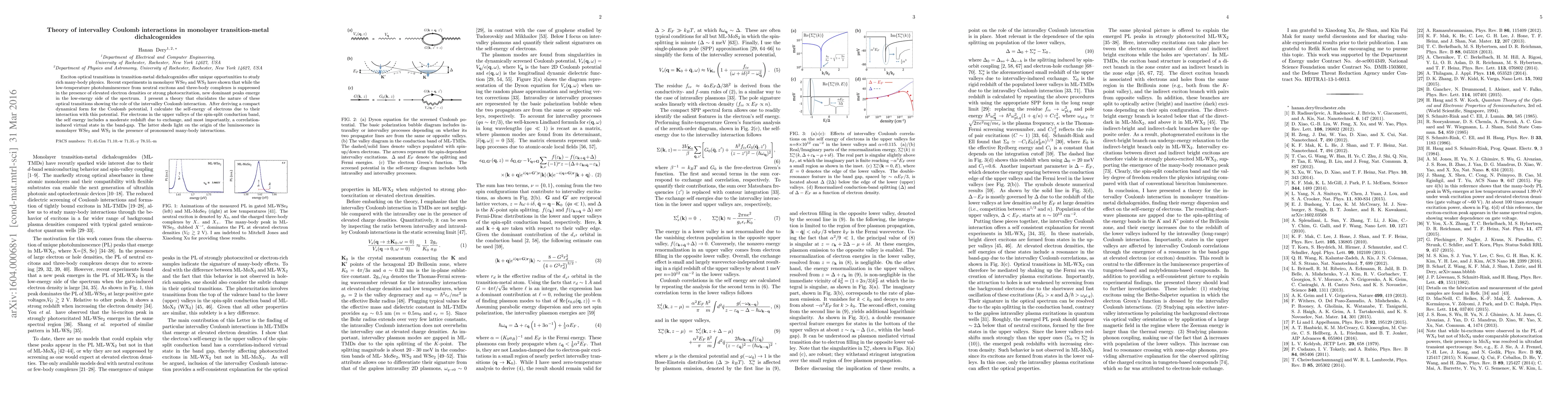 This paper develops a theory explaining the intervalley Coulomb interactions in monolayer transition-metal dichalcogenides, particularly WSe$_2$ and WS$_2$. It reveals that under elevated electron densities, the interaction leads to a correlation-induced virtual state in the band-gap, explaining the observed luminescence shifts.