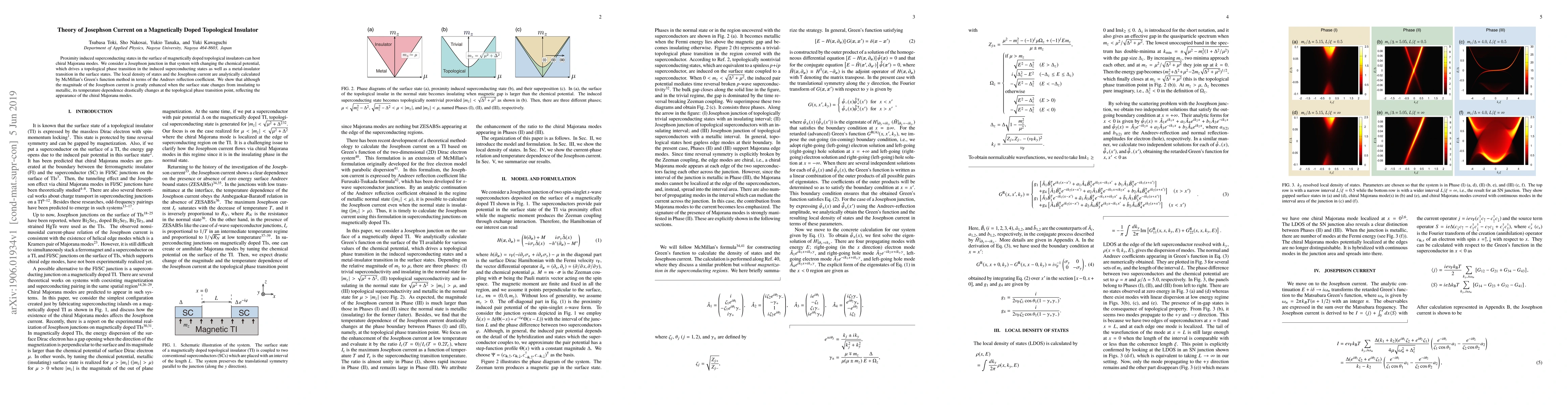This paper investigates the Josephson current in a magnetically doped topological insulator with induced superconductivity, revealing a topological phase transition and metal-insulator transition. The study shows that while the Josephson current magnitude increases with the transition to metallic states, its temperature dependence changes significantly at the topological phase transition, indicating the emergence of chiral Majorana modes.