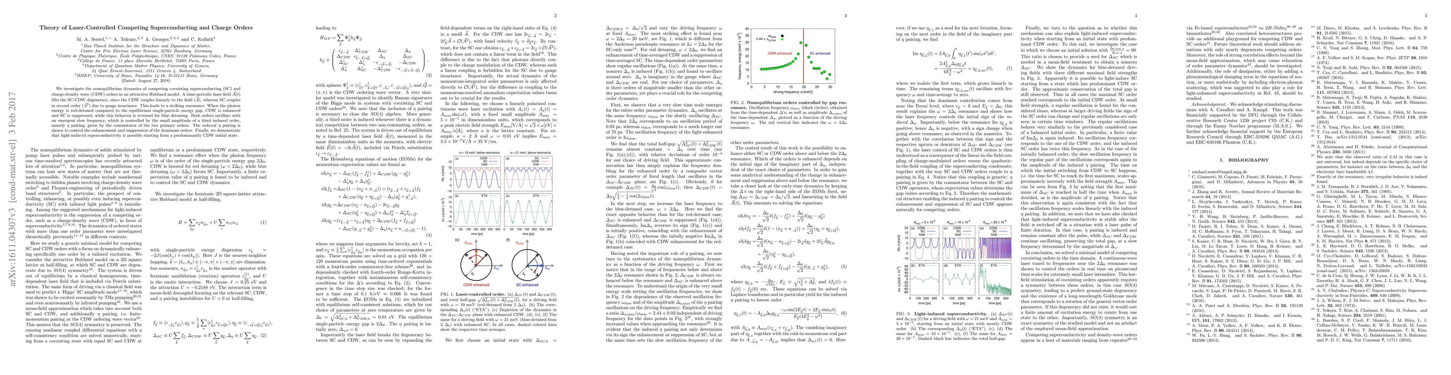 Researchers found that a laser field can induce superconducting order in materials initially in a charge-density wave state, and vice versa, with the laser's energy detuning controlling this switching.