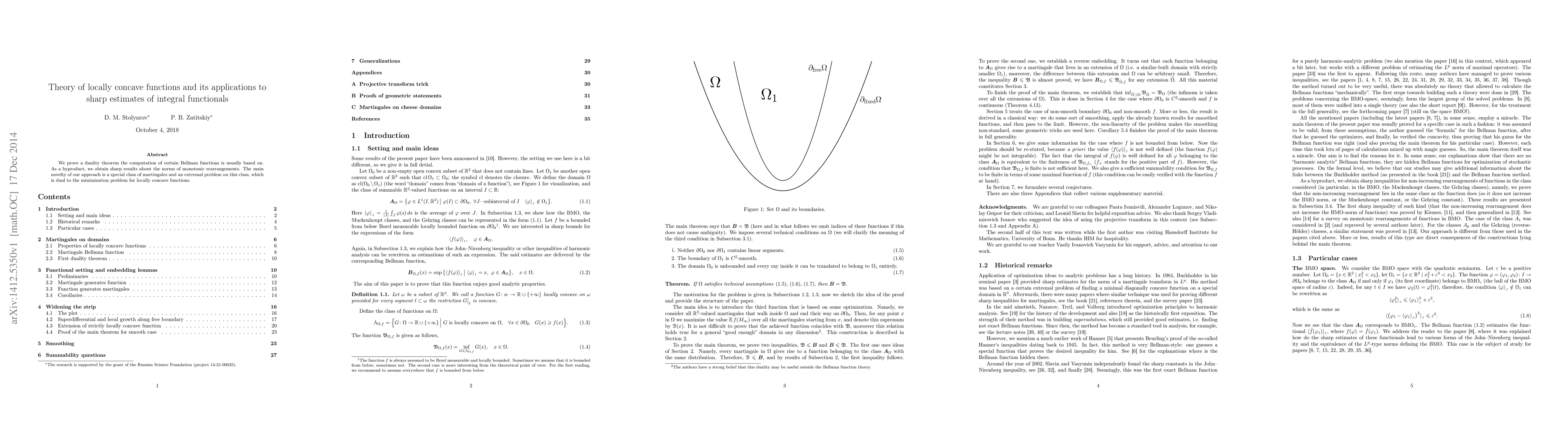 We prove a duality theorem the computation of certain Bellman functions is usually based on. As a byproduct, we obtain sharp results about the norms of monotonic rearrangements. The main novelty of our approach is a special class of martingales and an extremal problem on this class, which is dual to the minimization problem for locally concave functions.