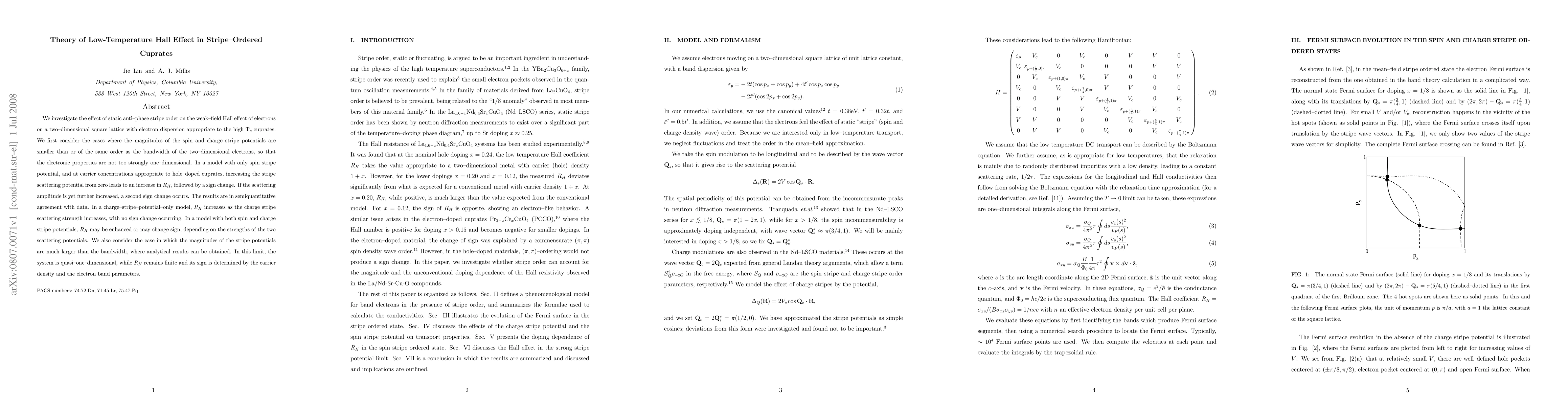 This paper explores the influence of static anti-phase stripe order on the low-temperature Hall effect in two-dimensional electron systems typical of high T$_c$ cuprates. It finds that the Hall coefficient $R_H$ can increase or change sign depending on the strength of the spin and charge stripe potentials, with results aligning semiquantitatively with experimental data.