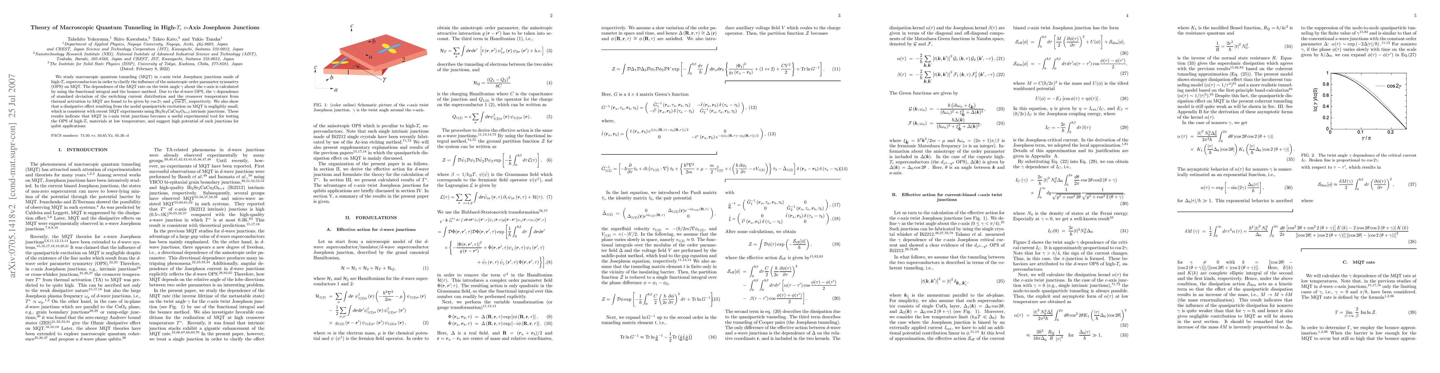 This paper investigates macroscopic quantum tunneling in high-T_c c-axis twist Josephson junctions, revealing that the anisotropic order parameter symmetry influences the tunneling rate. The study finds that the MQT rate's dependence on the twist angle follows $\cos2\gamma$ and $\sqrt{\cos2\gamma}$, indicating potential for qubit applications.
