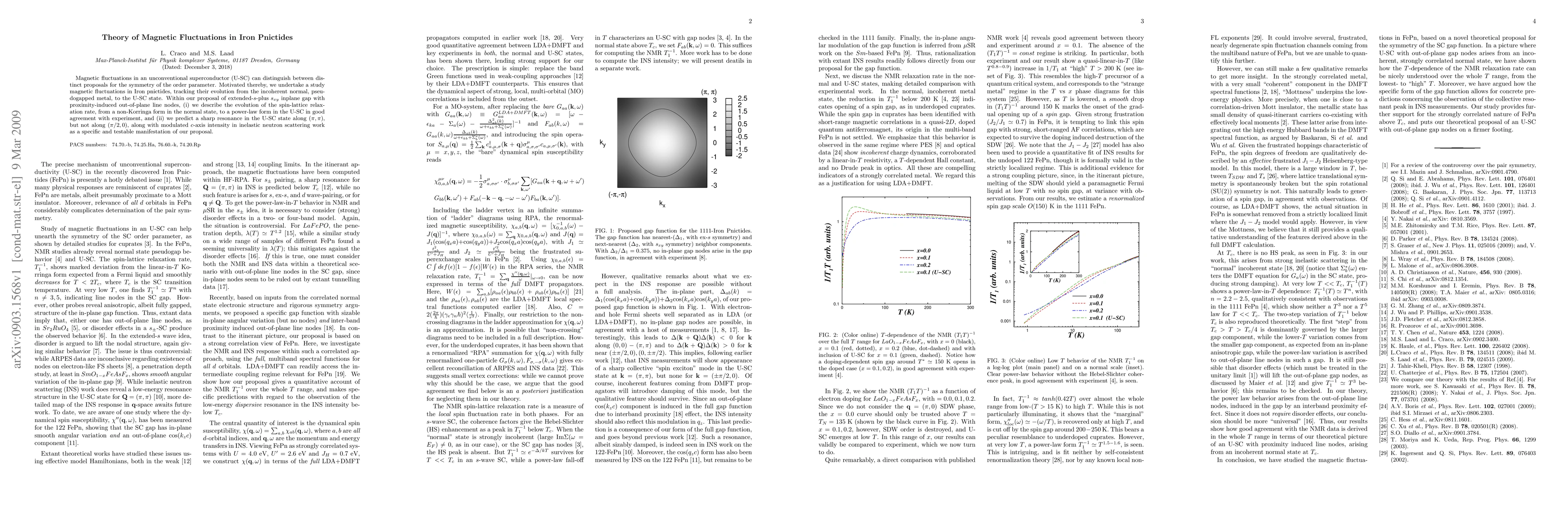 Magnetic fluctuations in an unconventional superconductor (U-SC) can distinguish between distinct proposals for the symmetry of the order parameter. Motivated thereby, we undertake a study magnetic fluctuations in Iron pnictides, tracking their evolution from the incoherent normal, pseudogapped metal, to the U-SC state. Within our proposal of extended-s-plus s_{xy} inplane gap with proximity-induced out-of-plane line nodes, (i) we describe the evolution of the spin-lattice relaxation rate, from a non-Korringa form in the normal state, to a power-law form in the U-SC in good agreement with experiment, and (ii) we predict a sharp resonance in the U-SC state along (\pi,\pi), but not along (\pi/2,0), along with modulated c-axis intensity in inelastic neutron scattering work as a specific and testable manifestation of our proposal.