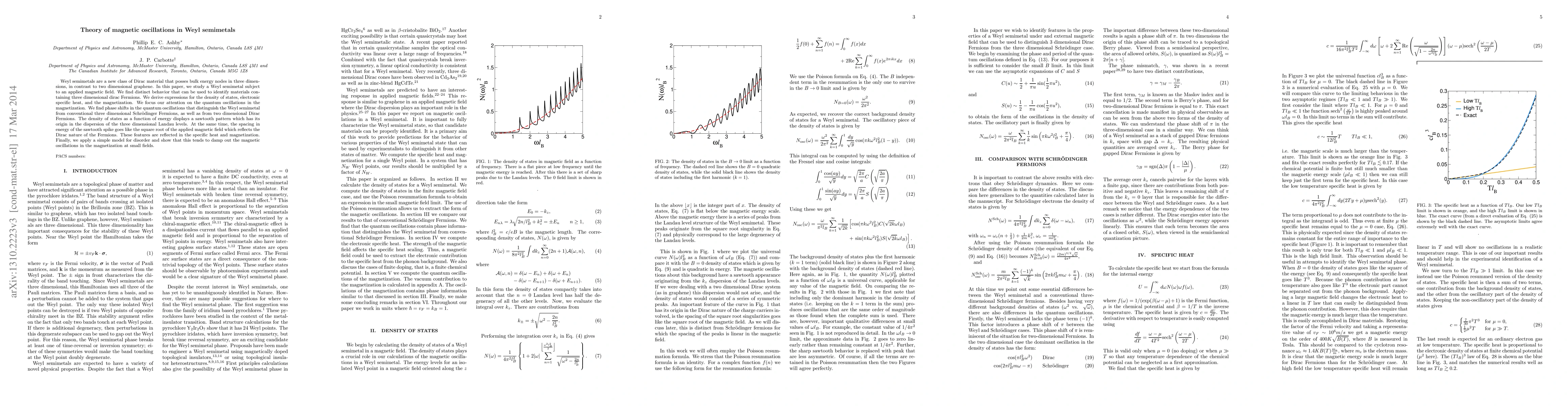 This paper investigates Weyl semimetals under a magnetic field, deriving expressions for their density of states, electronic specific heat, and quantum oscillations. It reveals unique phase shifts in quantum oscillations that differentiate Weyl semimetals from conventional three-dimensional fermions.