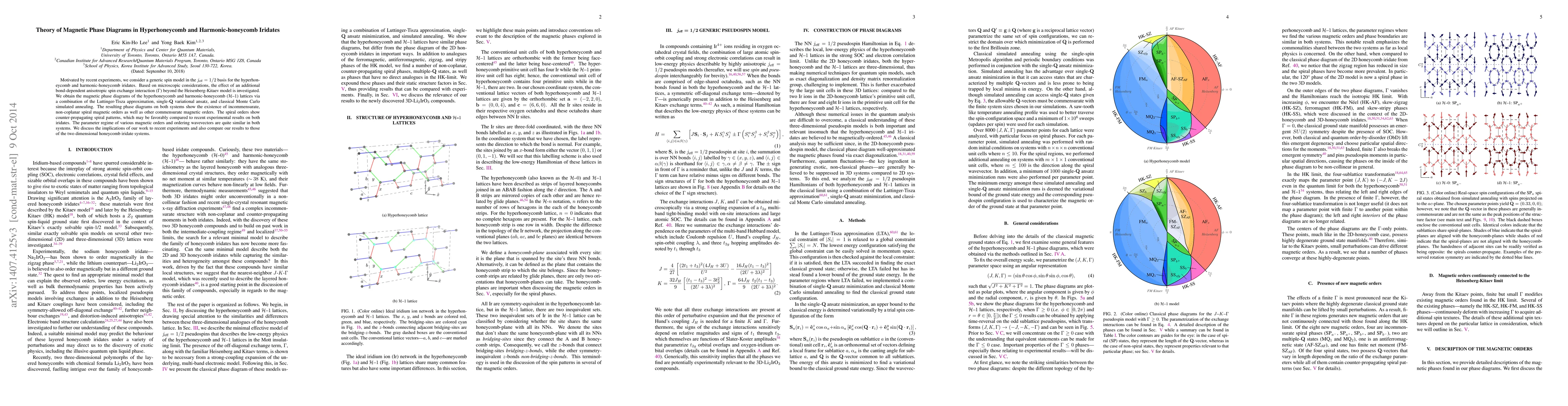 The paper presents a detailed analysis of magnetic phase diagrams for hyperhoneycomb and harmonic-honeycomb iridates, incorporating an additional anisotropic spin exchange interaction (Γ) beyond the Heisenberg-Kitaev model.