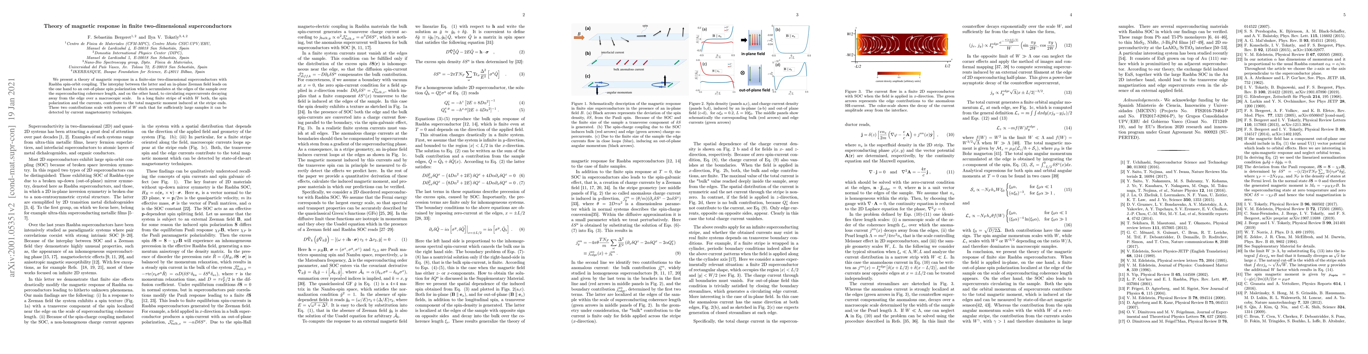This paper develops a theory explaining the magnetic response in finite two-dimensional superconductors with Rashba spin-orbit coupling, showing how it results in edge-accumulated spin polarization and circulating supercurrents, both contributing to the detectable magnetic moment in large samples.