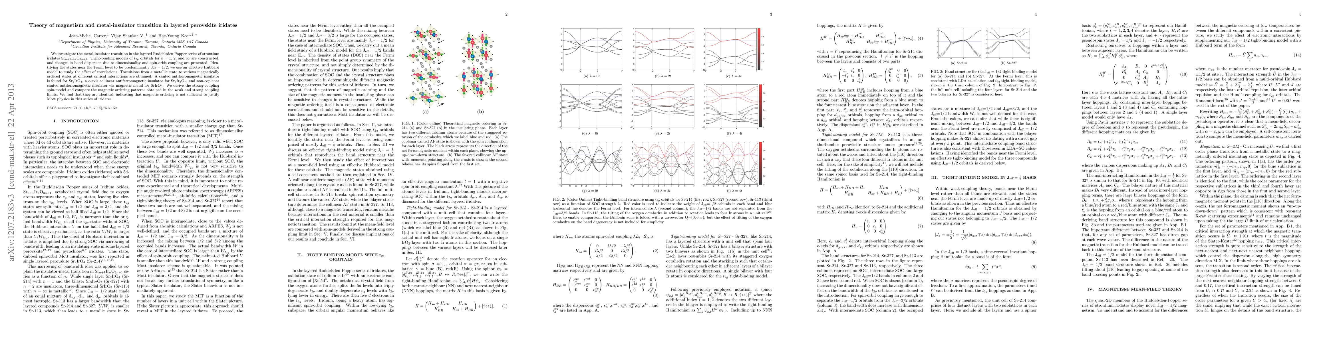 This research explores the metal-insulator transition in layered perovskite iridates using tight-binding models and an effective Hubbard model, revealing various magnetically ordered states and concluding that magnetic ordering does not support Mott physics in these materials.
