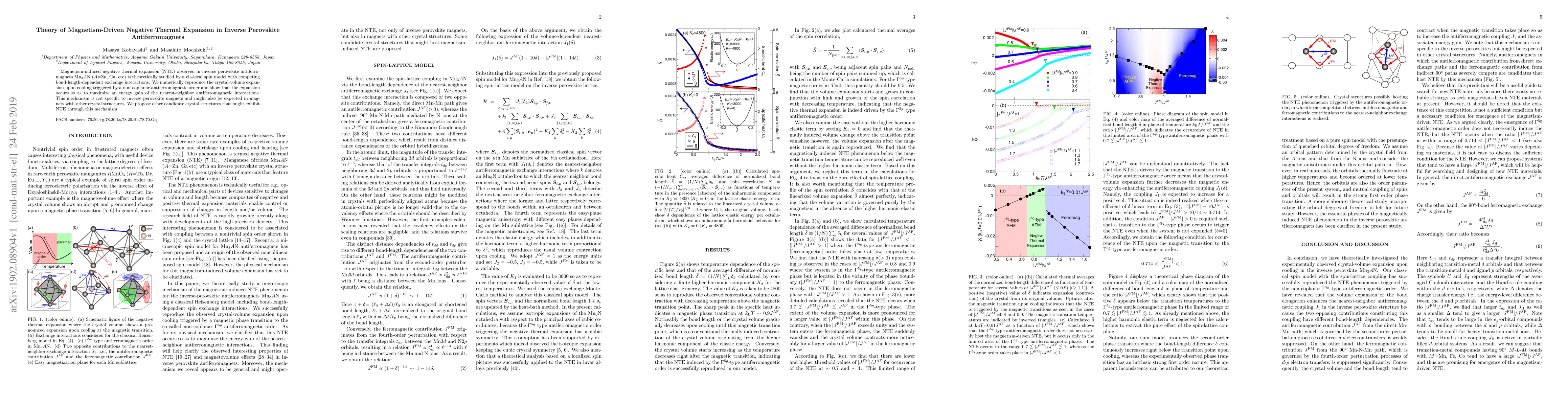 This paper theoretically explores the magnetism-driven negative thermal expansion (NTE) in inverse perovskite antiferromagnets using a classical spin model. The study finds that NTE is triggered by non-coplanar antiferromagnetic order, maximizing energy gain from nearest-neighbor interactions, and suggests similar mechanisms could occur in other magnetic crystal structures.