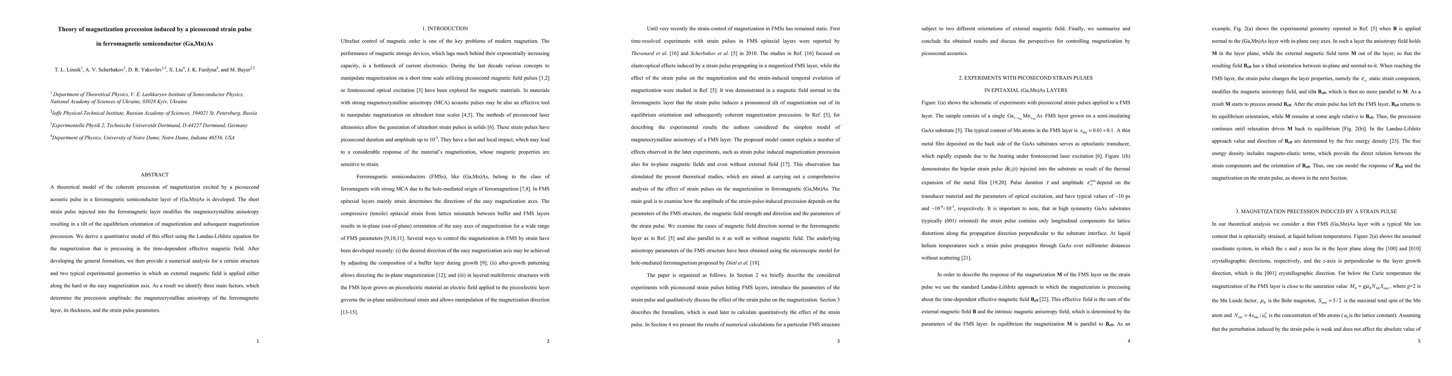 This paper develops a theoretical model to describe magnetization precession in (Ga,Mn)As induced by picosecond strain pulses. The model identifies three main factors determining precession amplitude: magnetocrystalline anisotropy, layer thickness, and strain pulse parameters.