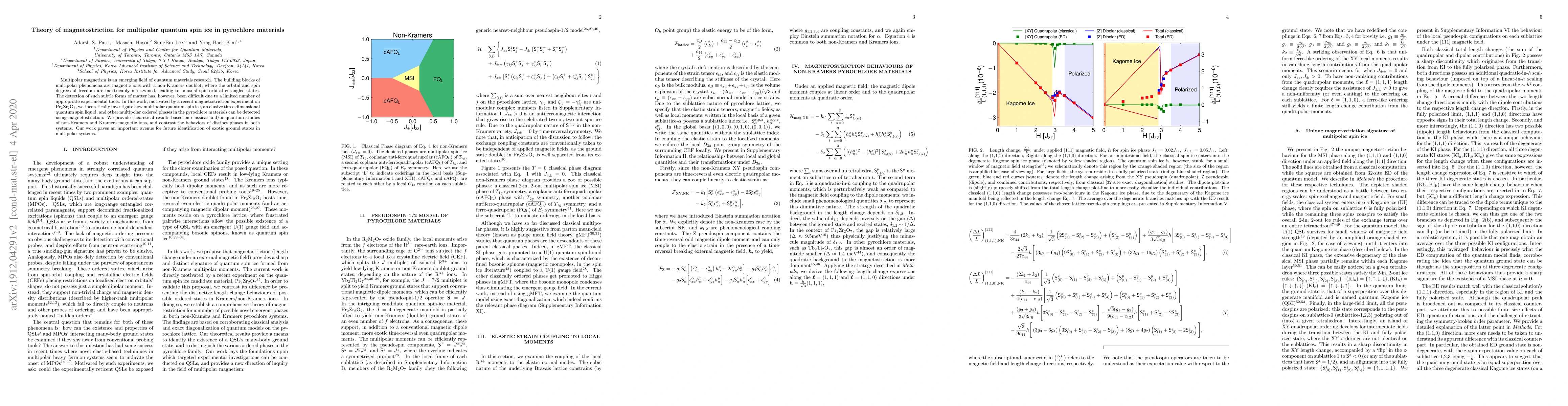 This paper theoretically investigates how magnetostriction can detect multipolar quantum spin ice and other ordered phases in pyrochlore materials, contrasting the behaviors of non-Kramers and Kramers magnetic ions. The study aims to identify exotic ground states in multipolar systems, offering a new approach for their experimental detection.
