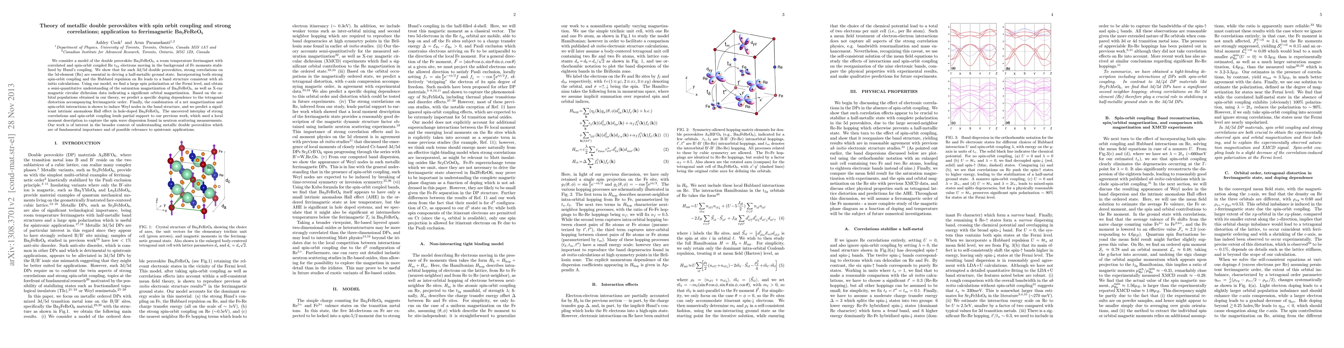 This paper develops a theoretical model for the double perovskite Ba2FeReO6, demonstrating that strong correlations and spin-orbit coupling in the 5d Re electrons drive a half-metallic ground state. The model predicts significant spin polarization, orbital magnetization, and an intrinsic anomalous Hall effect, with implications for potential spintronic applications.