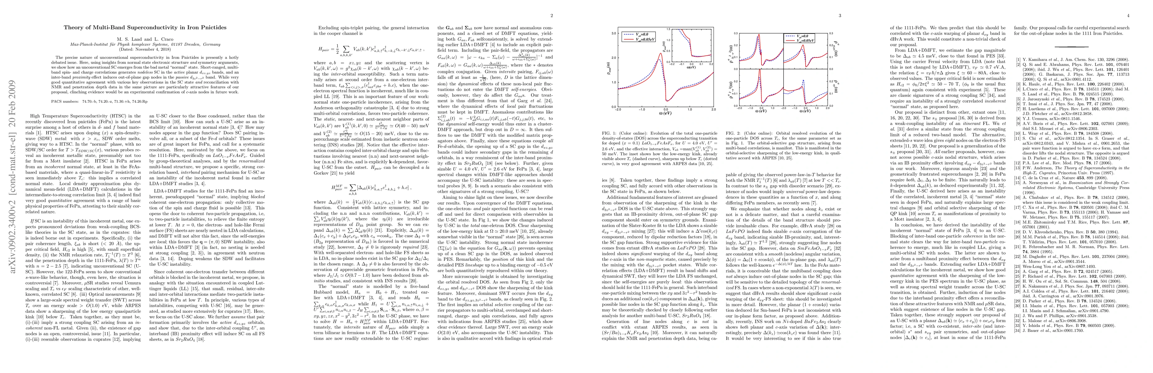 This paper proposes a theory for multiband superconductivity in Iron Pnictides, suggesting that unconventional superconductivity arises from spin- and charge correlations in the active planar bands, while inter-band proximity effects create gap nodes in the passive out-of-plane band. Experimental confirmation of c-axis nodes is needed to validate the theory.