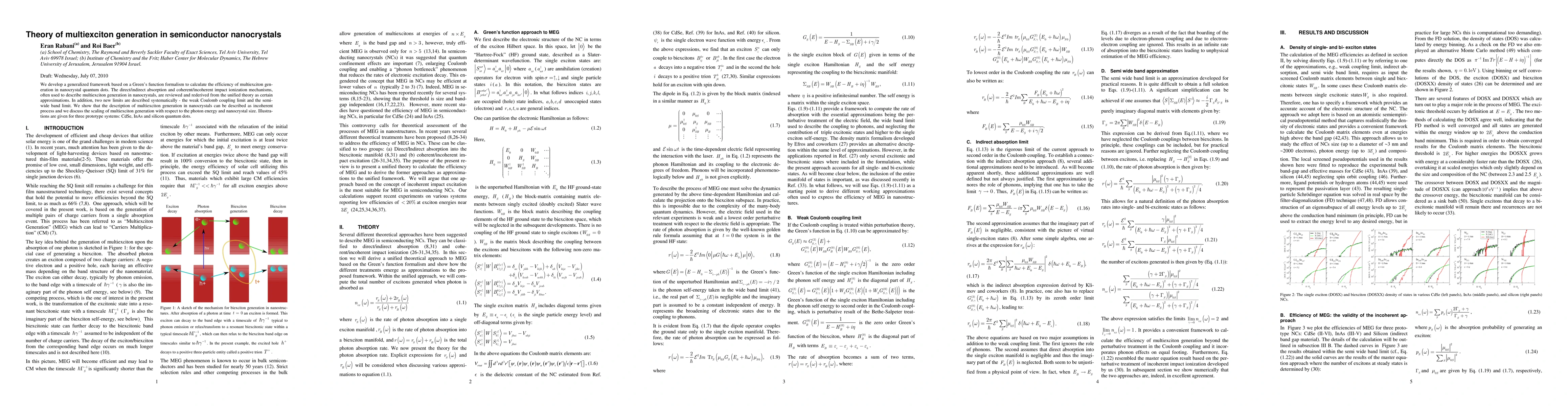 This paper presents a generalized framework using Green's function formalism to calculate multiexciton generation efficiency in semiconductor nanocrystals, reviewing and rederiving existing mechanisms as approximations within the new theory. It introduces two new limits and demonstrates that multiexciton generation is an incoherent process, scaling with photon energy and nanocrystal size.